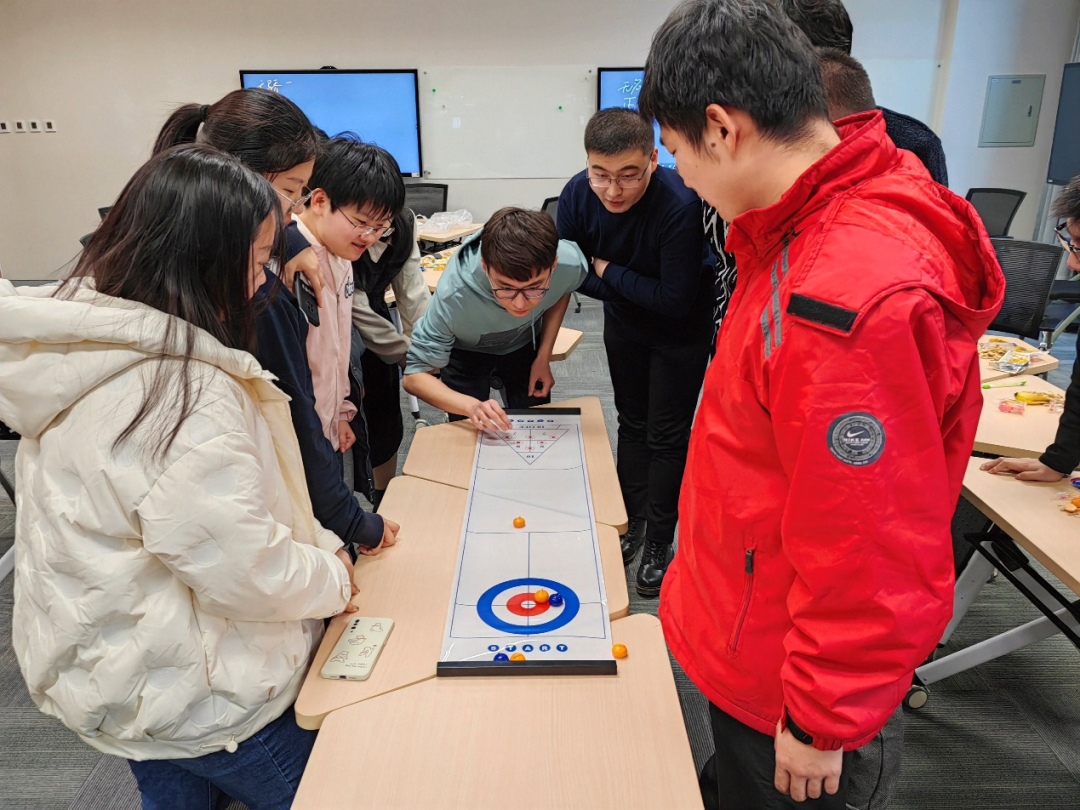 在普及冬奥小知识的同时,也通过各种趣味游戏与创作活动吸引同学参与到团日活动当中。2019级硕士一班团支部在学习了习近平总书记关于筹办冬奥会的重指示精神并了解冬奥相关情况后,通过开展多环节益智游戏与体验缩小版“桌上冰壶”,不仅调动起大家参与活动的兴奋与激情,还提前感受了冬奥赛场的激烈氛围与团队协作精神。团支部书记万学慧表示,此次主题团日更重要的意义在于大家从学业与就业的压力中暂时跳脱出来,通过各类游戏与身体活动呼吁大家关注全民健身、关爱身心健康。