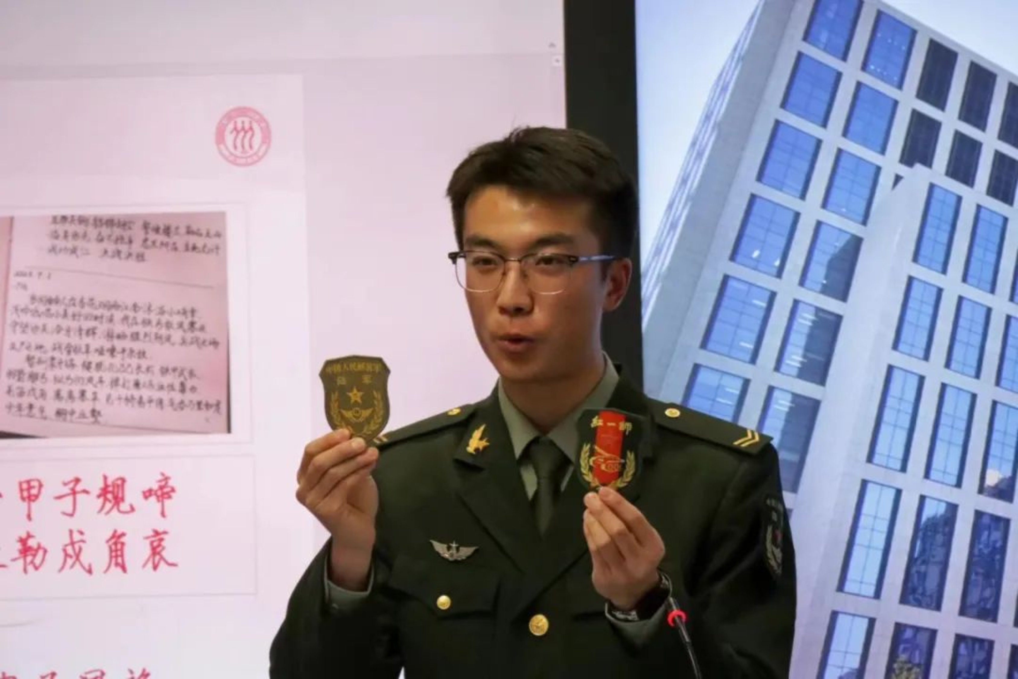 数张照片展现出了尹诚濠在军队中生活的方方面面。参观抗日战争期间缴获的功臣号坦克,激发了无限爱国豪情;驾驶战车驰骋四方,感受到了祖国的雄厚实力;高射机枪射击声巨大,严重耳鸣却仍然坚持完成训练;昼伏夜出、能征善战,尽显一名优秀军人的素质。提到用工兵锹构筑单兵掩体时,尹诚濠回忆起被磨出水泡的双手,不禁露出一抹回忆的笑容。