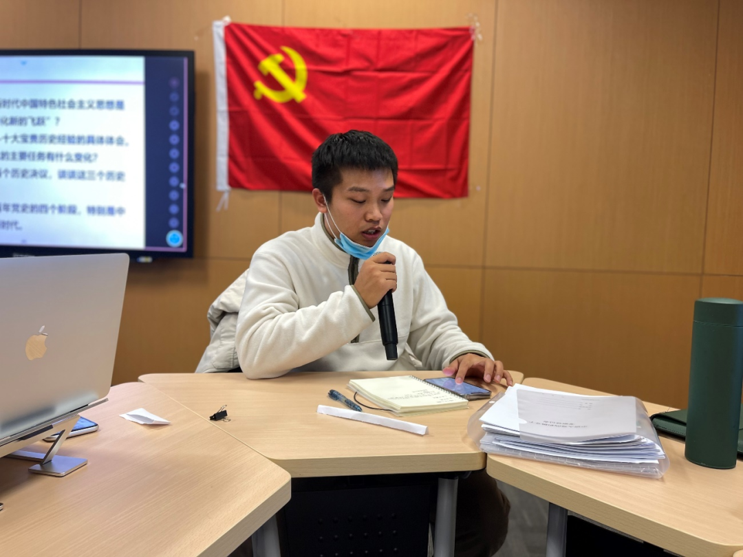 本次主题党日活动以理论学习、研讨交流、心得分享等形式展开。各支部对党的十八大以来中央历次全会及其主要内容进行回顾,了解党的十九届六中全会会议概况和主要议程,学习《中共中央关于党的百年奋斗重大成就和历史经验的决议》、《关于召开党的第二十次全国代表大会的决议》等文件精神。随后,学院党委委员结合自身研究领域,为同学们讲解了本次会议和历史决议的重要性,要求同学们认真研读、深刻把握,提高思想觉悟和理论水平。此后,全体党员围绕学习内容开展自主研讨,结合自身学习研究和生活经验,就如何落实十九届六中全会精神、如何正确看待党的历史成就等问题提出自己的建议。