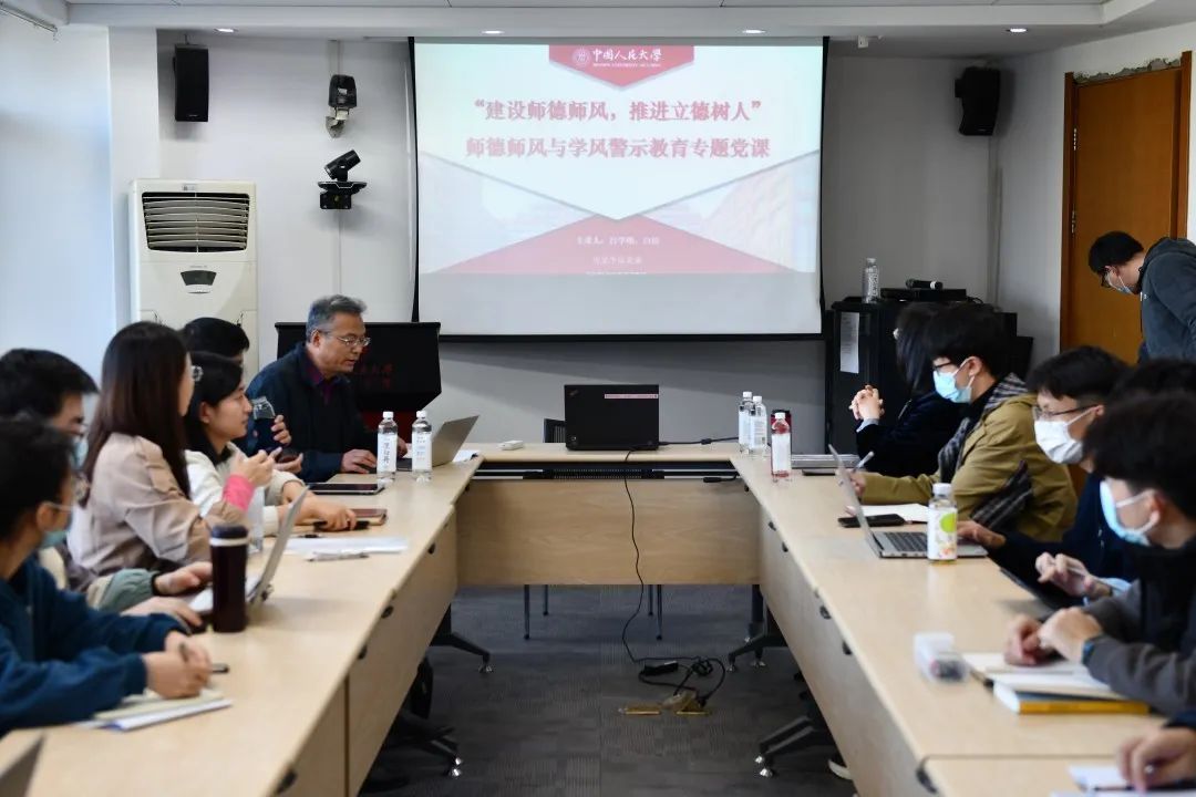 吕学明就本次专题党课做总结发言。他提出,学院将持续探索学院评奖评优体制的适应性改革路径,夯实制度基础,为良好的师德师风与学风提供根本保障。他勉励学院教师和学生党支部代表,多加深入了解学生需求,以同理心把握学生的思想状况,从而更好地引领广大同学树立积极的人生观、价值观,塑造学院良好的学术风气,实现师生共同发展。