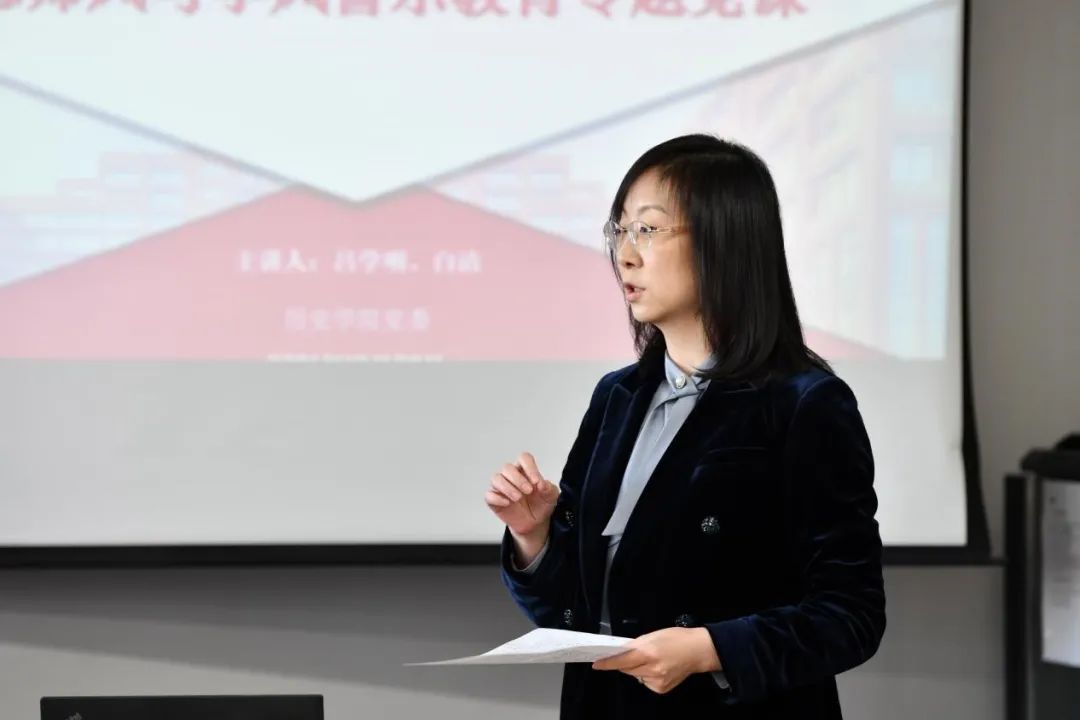 党课第二部分,白洁结合具体案例对学业学风教育展开生动说明。白老师列举了往届部分学生存在的不良现象,并向同学们强调:一是要加强思想政治学习,坚定理想信念,在大是大非面前不动摇,在种种考验面前不退缩,提高反渗透意识,树立正确的政治观、大局观;二是要提高自身道德素质,严格遵守学术规范,按照学校和学院的有关规定,认真、扎实地完成本专业的学习任务,落实培养方案中的相关要求,避免出现学术不端行为。