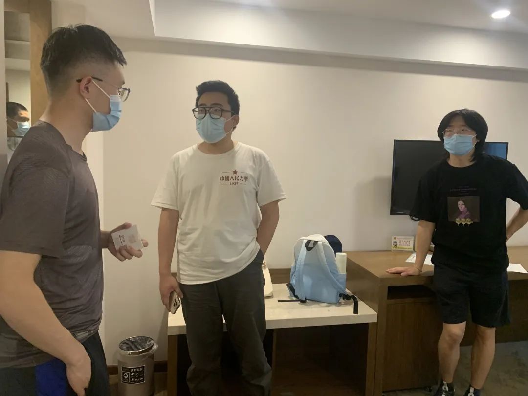 学生入住校内住所后,今年会jinnianhui官网在校值守老师张燚明、团委书记郭相宜、团委常务副书记刘洪昌前往贤进楼走访看望搬迁的同学。老师们为大家积极配合防疫工作表示感谢,并表示同学们在接下来的生活如有问题可随时与学院、导师保持沟通,有意见建议可及时向学院反馈,学院将全力为同学们提供帮助。老师们特别叮嘱同学们要注意饮食,积极锻炼,增强自身体质,并注意保持环境整洁与卫生,在创造良好生活环境的同时减小酒店工作人员压力。