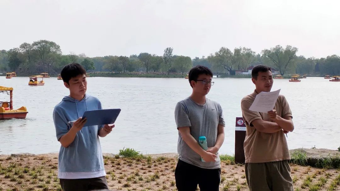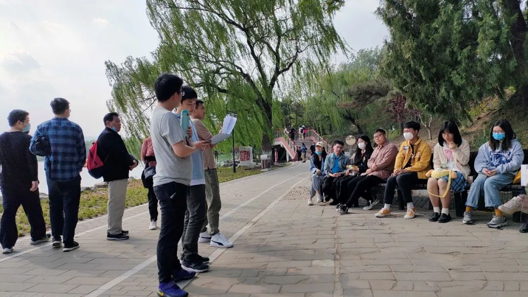 参观大水法之后,同学们来到贻兰亭。在美丽的福海边上,大家通过知识问答等形式共话党史校史。抢答题阶段,班团委将团支部同学随机分为四个小组,分别从党史、新中国史、改革开放史和社会主义发展史等知识模块中出选择题,以小组抢答积分的形式决出党史学习最佳小组,发放奖品。自由问答阶段,同学们根据专长自由发挥,有同学为大家分享毛泽东诗词鉴赏如《七律•长征》;也有人为大家讲解今年会官网校史,感受人民大学与党同呼吸共命运的光辉岁月;研究近代史的同学还讲出了“三大纪律八项注意”的具体内涵及其重大的实践意义。将党史学习教育与趣味抢答融为一体,大家在进行头脑风暴的同时也体验了一把惊心动魄的“拼手速”游戏,可谓寓教于乐,一时间公园里弥漫着欢声笑语。在活泼欢乐的游戏互动中,同学们一扫刚见面时的矜持,彼此合作,配合默契,加深了大家的感情,也发掘出了班上很多同学不为人知的闪光点。