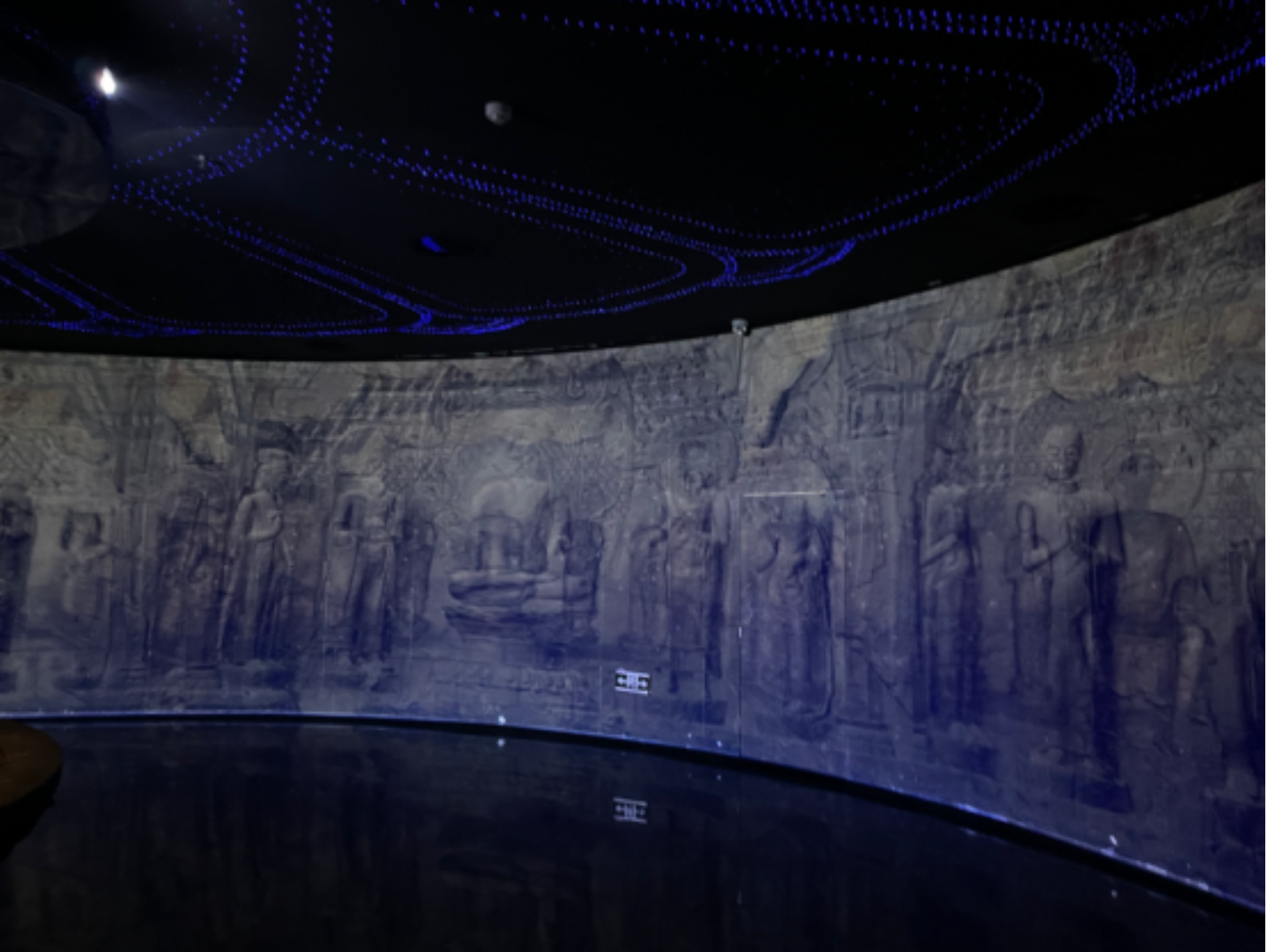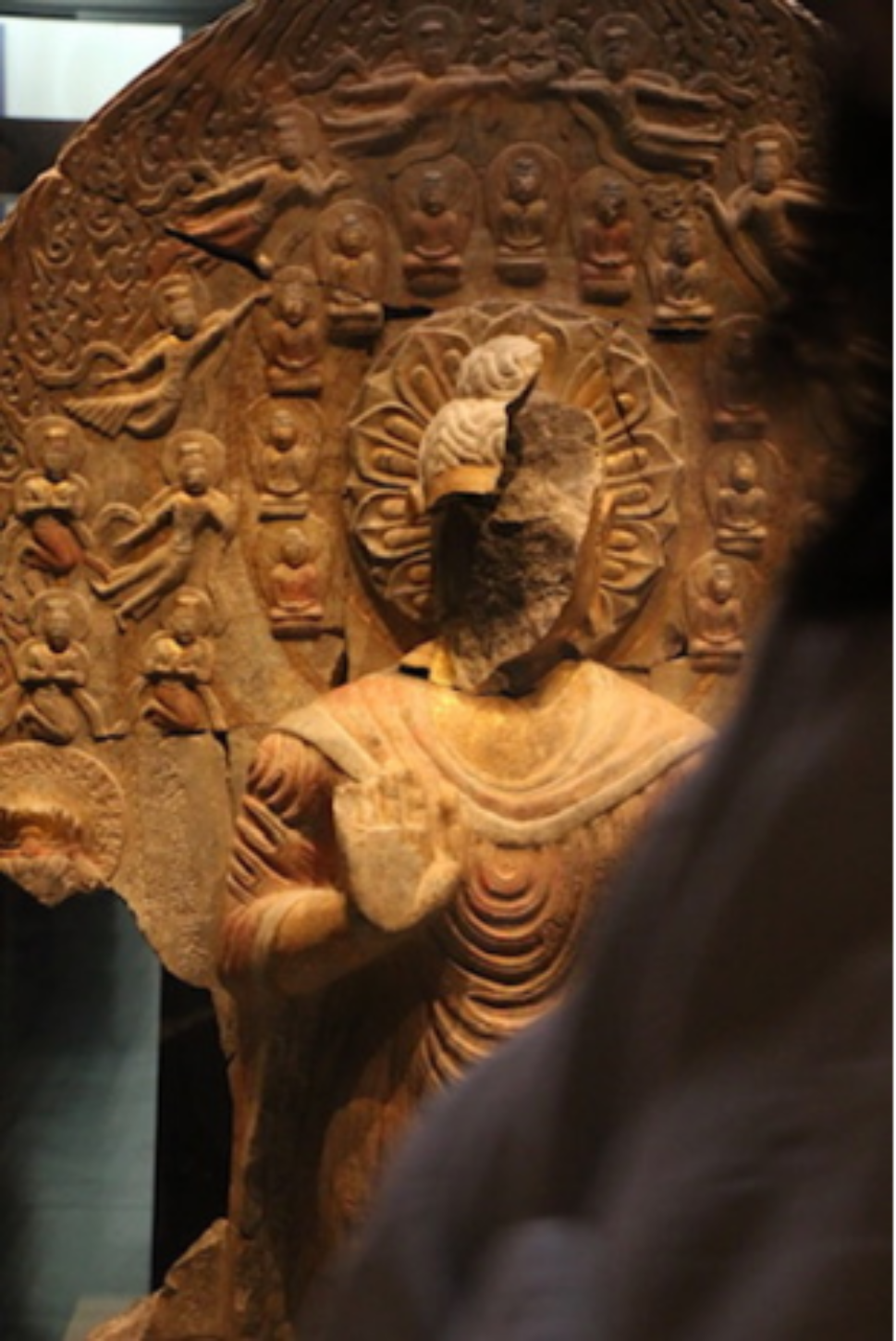 不幸的是,响堂山石窟曾遭受过严重的破坏,其中的石刻造像流散到世界各地。自1922年日本学者常盘大定对南北响堂进行调查以来,精美的造像样式即引起了盗凿者的关注,民国时期已有众多造像流失海外。2019年,响堂山石窟艺术博物馆与美国芝加哥大学、太原理工大学艺术学院等跨区域合作,对响堂山石窟进行三维数字化复原。在对散落于美国的百余件造像进行数字收集后,目前已有6尊流失百年、分隔两地的造像实现了“身首合璧”。来到响堂山石窟数字考古中心,同学们见到了这批遗失海外的“国宝”。正是得益于三维数字化复原的技术,离散的国宝得以以另一种形式回到故土,与大家见面。