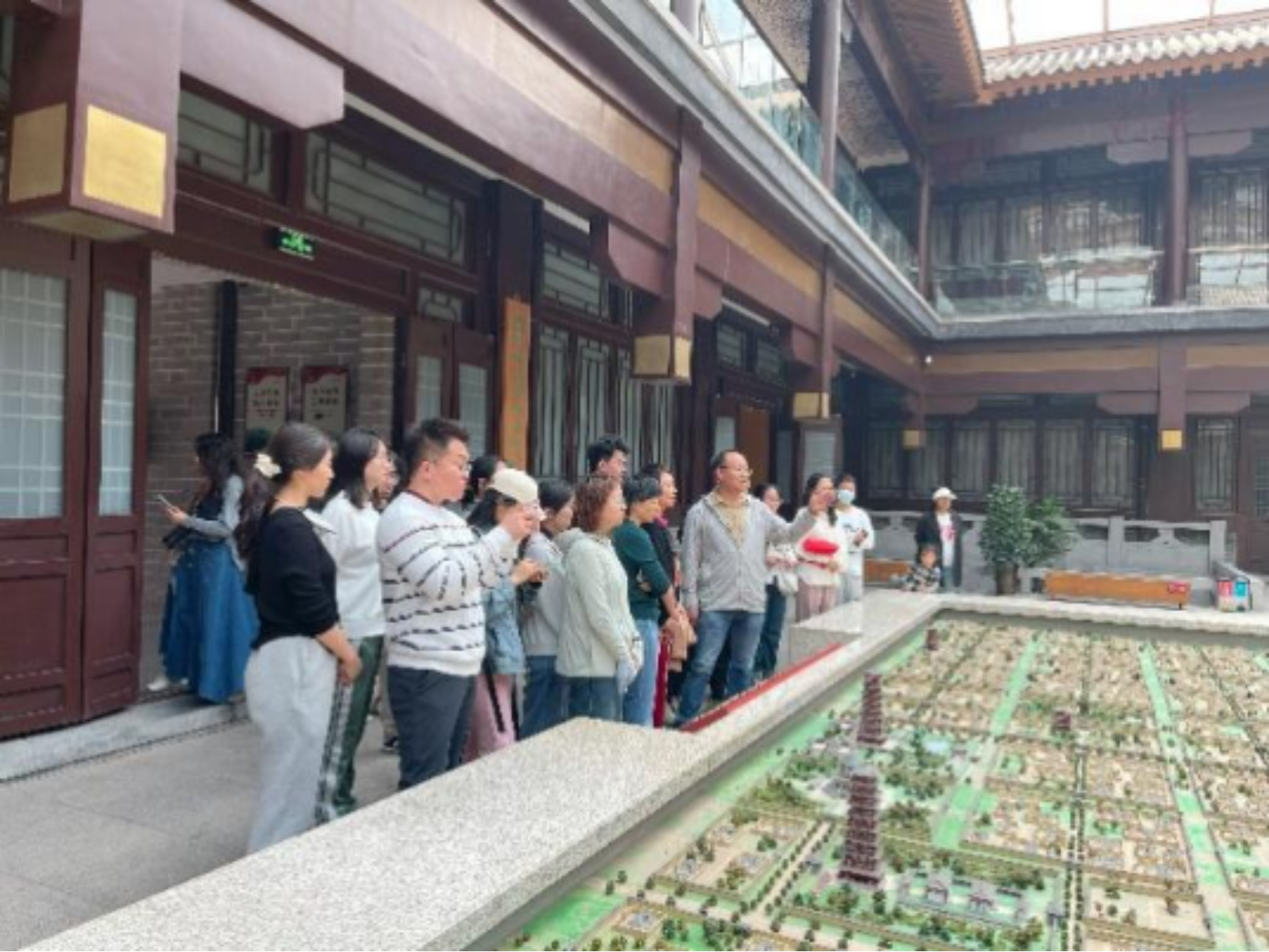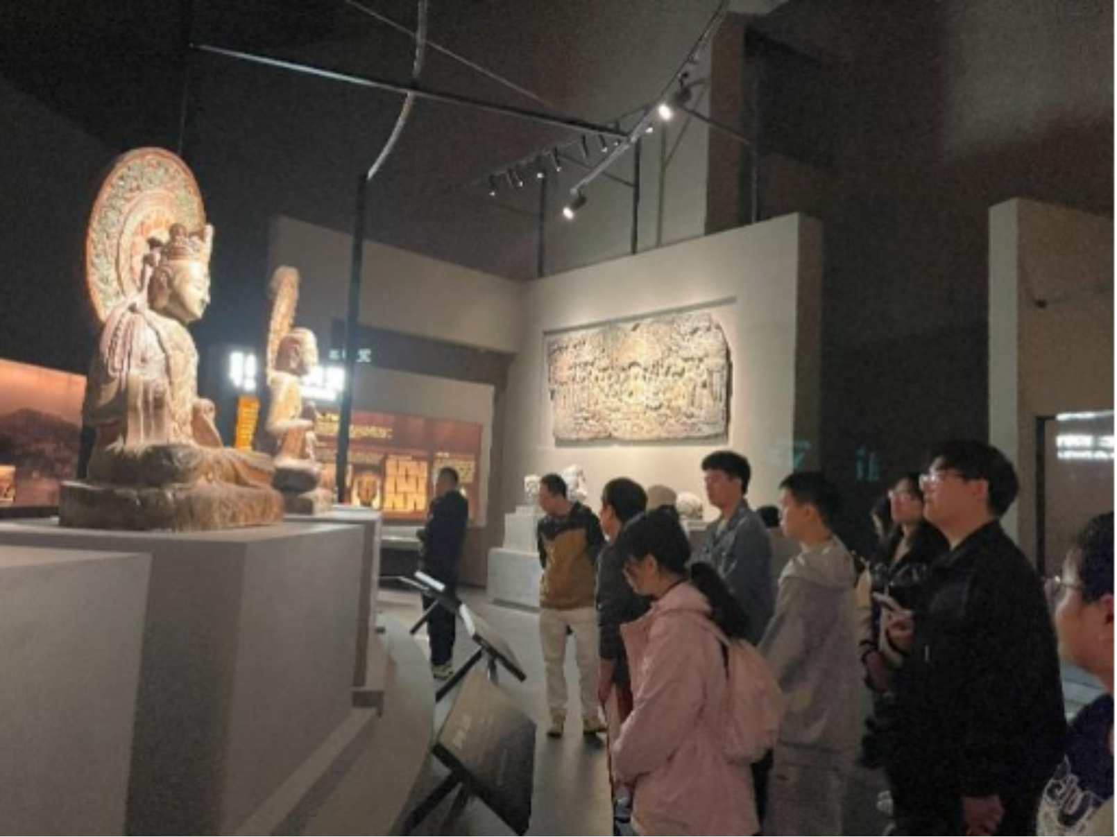 邺城博物馆集中展示了曹魏至北齐时邺城考古发掘出土遗物以及六世纪邺城佛教相关文物。同学们参观了邺城复原沙盘模型、欣赏了临漳县北吴庄佛教造像埋藏坑出土的佛教造像文物。以文物为窗,同学们得以由此瞥见邺城繁华的一角,体悟千年古都的不朽传承。