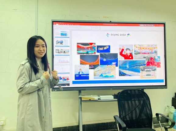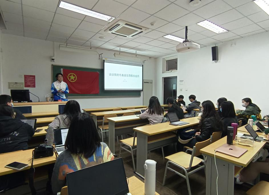 2019级硕士2班团支部邀请了服务于张家口赛区山地新闻中心的陈晓璇同学进行宣讲。陈晓璇同学在志愿服务期间具体负责媒体租用空间的管理。在赛区气候严寒、场地条件艰苦、闭环管理严格的条件下,陈晓璇同学及其所在的志愿团队发扬高度的奉献精神和坚韧的毅力,坚守岗位,耐心细致,圆满完成了规定的任务。陈晓璇同学回忆道,在服务期间,志愿者们一起包饺子贴春联,度过了一个难忘的春节,也有幸结识了一些热情友好的国内外媒体朋友,团队中有成员在工作中摔伤依然坚持到最后,极大地鼓舞了团队的士气。陈晓璇同学认为,参与此次冬奥志愿工作,收获最大的是一种集体荣誉感和归属感的获得,这是一种更高层次的精神满足;同时,在志愿工作中感受到了团队合作的快乐和互相帮助的感动,收获了陪伴和友谊。通过此次活动,志愿者们感受到平凡岗位依旧可以做出不平凡的事情,万千细小的奉献力量汇聚起来就是一股强大的社会力量,能够成为其中一份子是一种荣幸。