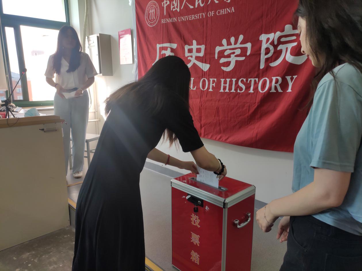 学术部负责人郝雨婕分发投票单