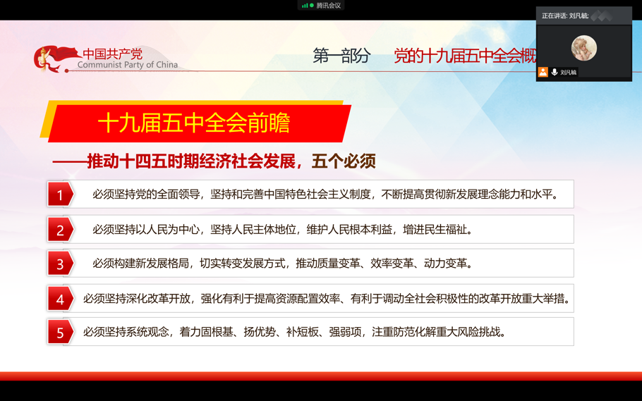 11月11日至14日,今年会jinnianhui官网各老生团支部举行团组织生活会暨“学习十九届五中全会精神”主题团日。各班团支书面向全体团员进行工作述职,对于2019-2020学年的支部工作进行了总结回顾,并带领大家对十九届五中全会的重要内容进行了主题学习。