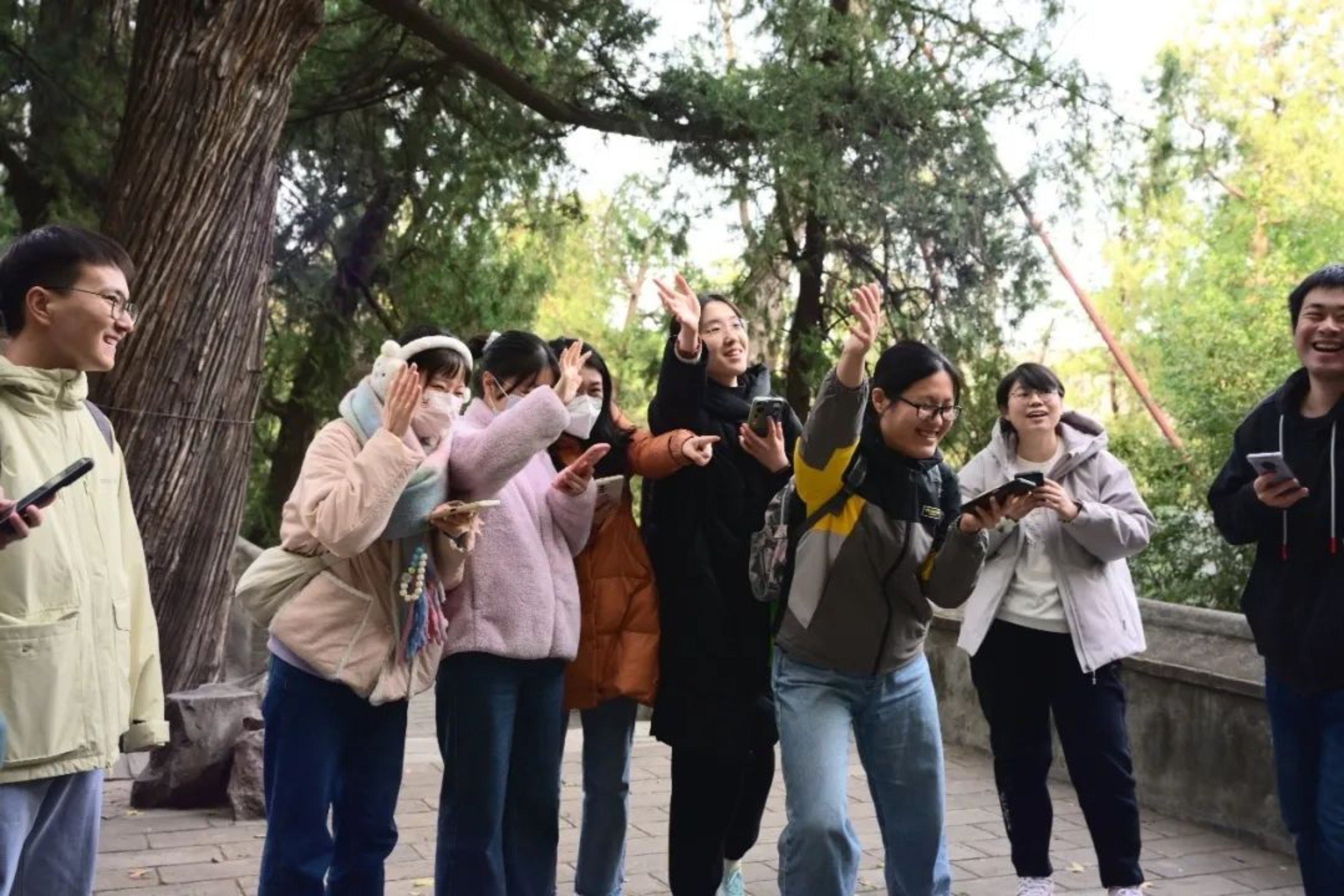 上午十一点半,同学们在香山公园东门集合,合照并进入香山公园。用餐之后,同学们经过勤政殿与静翠湖,来到位于香山半山腰的双清别墅参观旧址及“毛泽东同志在香山”主题展览。