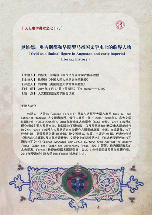【主讲人】 约瑟夫·法雷尔 (宾夕法尼亚大学古典系教授)