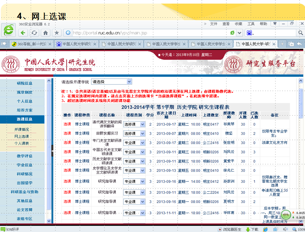 2013-2014学年第1学期清史所博士研究生课程表
