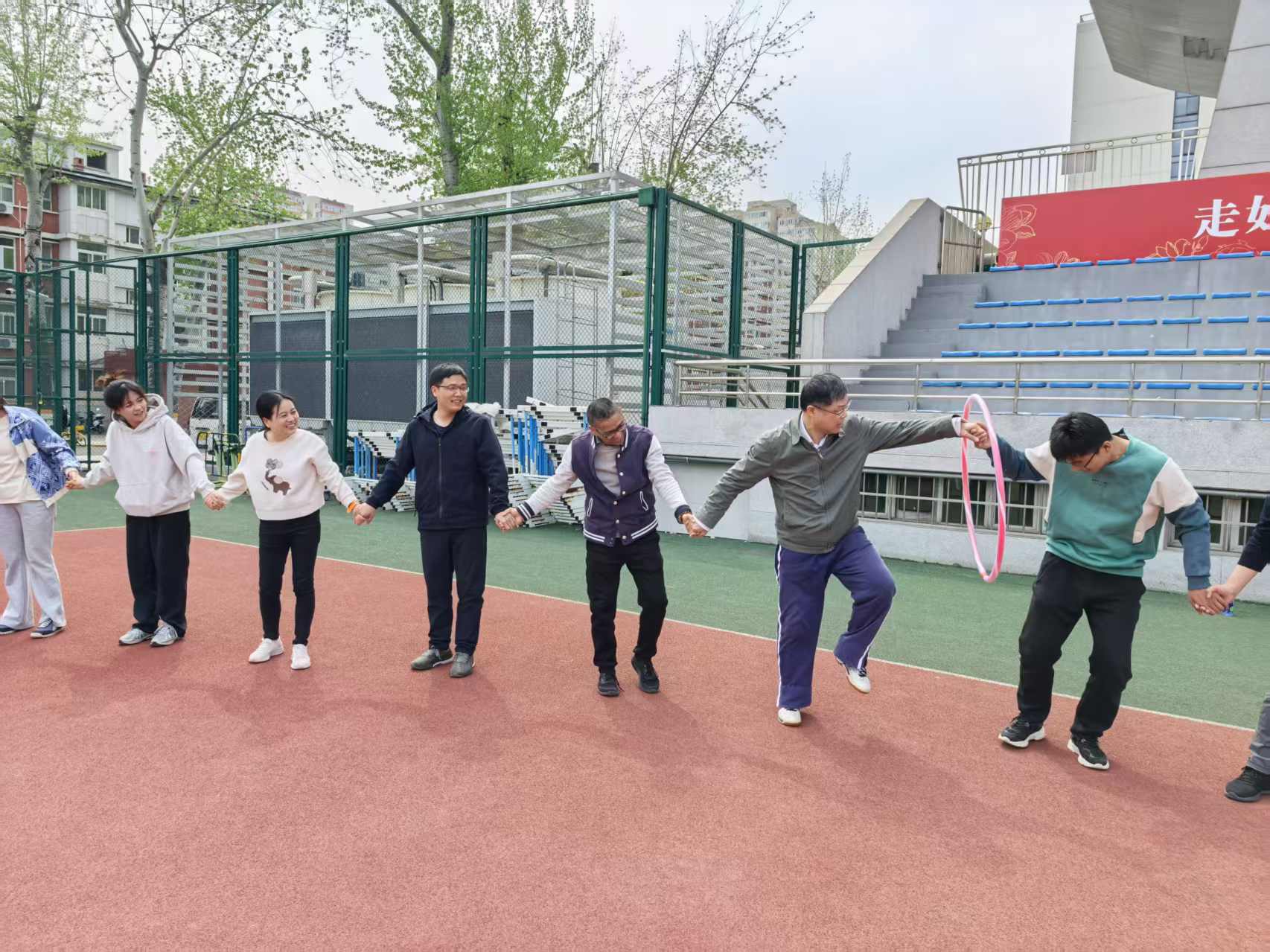 13 时 30 分,哨声清脆响起,“混合教工组呼啦圈传递” 项目正式拉开赛事序幕。今年会共有 10 位教师参与到此次呼啦圈传递之中。得益于赛前充分的热身准备,各位教师在比赛过程中行动井然有序,彼此配合默契,在一片愉快的氛围里顺利完成了比赛项目。