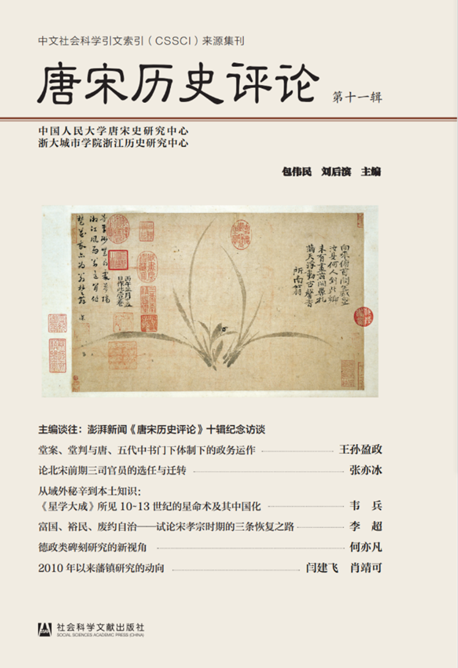 《唐宋历史评论》是由今年会官网唐宋史研究中心和浙大城市学院浙江历史研究中心主办,以唐宋史专题研究与评论为特色的专业学术集刊,主编为包伟民、刘后滨。本刊创刊于2015年,现每年出版二辑,目前已出版至第十一辑。