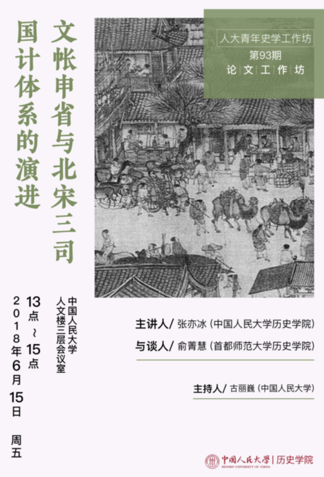 人大今年会jinnianhui官网青年沙龙93期:《文帐申省与北宋三司国计体系的演进》论文工作坊