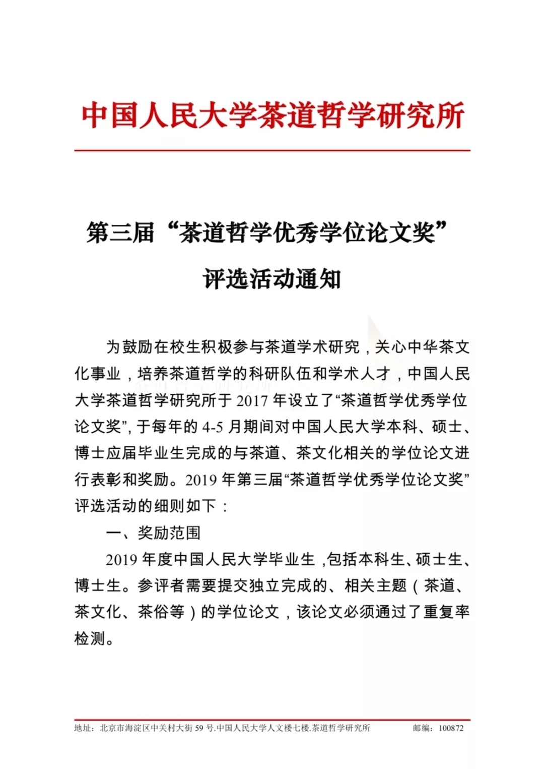第三届“茶道哲学优秀学位论文奖” 评选活动通知