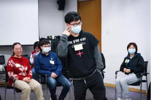 活动伊始,主持人小治首先带领大家玩起了“大风吹、小风吹”的游戏,通过说出不同的条件进行换位活动,让每个人都参与到游戏中来。在紧张地抢板凳地过程中,大家逐渐放松起来,会议室里传出阵阵笑声。