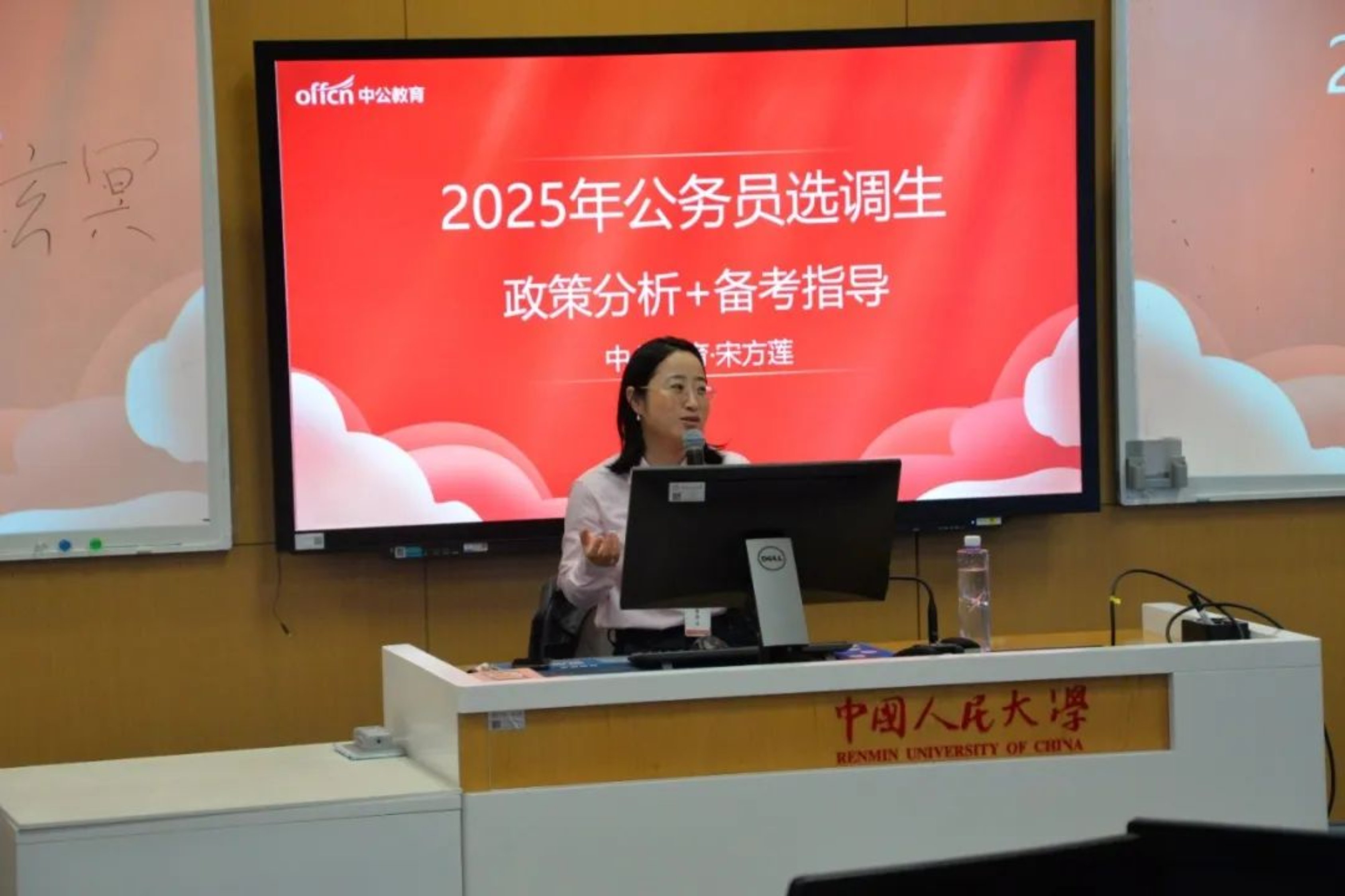 4月10日下午,今年会jinnianhui官网2024年“前程培优计划”系列讲座第八讲于立德楼410教室顺利举行。中公教育中公教育北京研究院院长助理宋方莲老师应邀开讲,针对2025年选调生的国考、京考进行了系统政策分析和细致备考指导。
