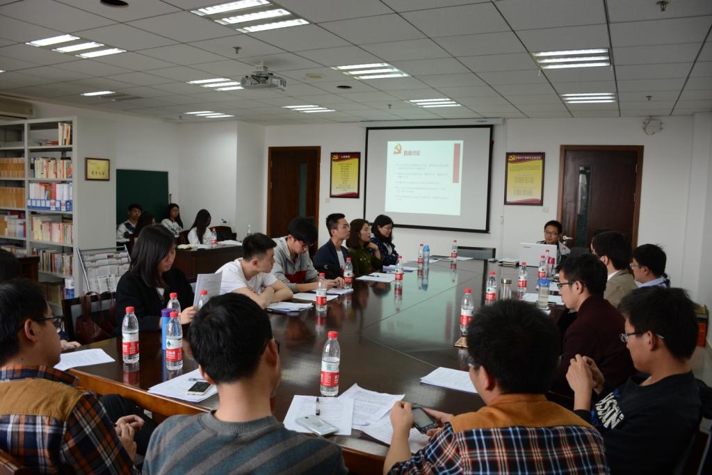 会议分为集体学习和自由讨论两大主题阶段。在集体学习过程中,支部成员从正面典型事迹和反面教材入手,分别学习了《中国共产党廉洁自律条例》和《中国共产党纪律处分条例》两份党内法纪法规。姚毓同志分享了来自他家乡的先辈王若飞同志的事迹;魏镇同志向大家讲述了“大无大有周恩来”的高尚情操;冯帆同志关注平凡生活中的人物,通过讲述烟台大学保洁人员吃学生们剩饭的故事,告诫大街勤俭节约;李孟宁同志帮我们回顾了吴玉章老校长的艰苦生活与勤奋的工作;王邓会同志从古代中国的军民关系讲起,通过清官于成龙的故事印证了中华民族悠久的清廉传统;张云同志分享了众所周知但却不深知的“包青天”的正直事迹;易晋铭同志结合自身经历,讲述杨善洲同志的事迹在他成长中的影响;饶建同志最后通过焦裕禄同志的感人事迹,告诫党员治国先修身的道理。