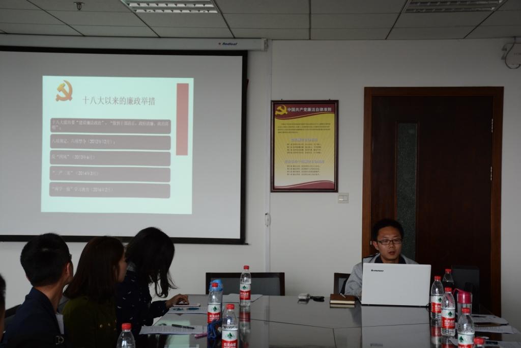 郑敬明同志向其余同志介绍建国以来特别是改革开放后的腐败问题与反腐情况,以数据和案例形式使大家明确腐败问题的严重性与反腐斗争的严肃性。