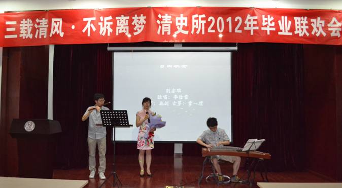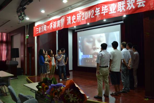 春去夏来,年华似水,阵阵清风吹落点点细雨,倾诉着些许离愁别意。转眼间2009级的硕士、博士学长们即将毕业。为了给即将离开清史所的学子们留下一个美好的回忆,由清风学社主办的清史所2012年毕业联欢会“三载清风,不诉离梦”于6月20号下午两点在贤进楼一层多功能厅如期举行。