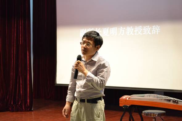 接着,在2011级博士生施剑的带领下2011级硕士生曾一理、山珊、王婓及本科生李晗雪等为大家献上雅致而精妙绝伦的古曲三联奏《渔舟唱晚》、《春江花月夜》和《别亦难》。在潇洒淡雅的水墨江南背景映衬下,悠扬清丽的琴箫合璧之音和婉转的歌声倾诉着依依惜别之情。临别之际,最放不下学长们的便是一路呵护关怀大家的老师们。作为毕业班的班主任,朱浒老师也向他亲爱的同学们道出了内心的不舍与期许。“但愿人长久,千里共婵娟”苏轼的一曲《水调歌头》唱出了千古不变的永恒思念,而今透过2011级硕士苏柏玉那甜美轻柔的歌声道出了所有同学对老师和母校的眷恋。贺绿原和陈力学长分别作为硕士生和博士生代表发表毕业感言,表达了对老师们和同窗们的感谢和不舍。