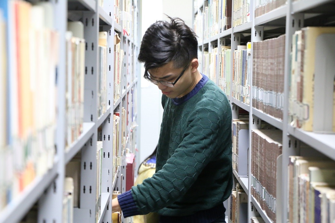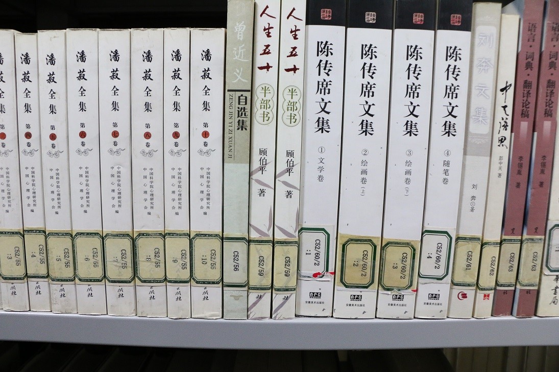 同学们学会以后,两人一组,从书架两端一起开始整理。任务虽然难度不大,但也不好做。书架很高,高的地方要仰着脖子,伸直手臂才碰得到,有时候还要站在凳子上;低的地方大家都是俯身蹲地,侧着脑袋,有时为了方便直接跪在地上。密排库书架之间的间距较小,同学们在其中下蹲,起身,转身都不是很方便。加之书架和书本常年积灰,把同学们的手都染黑了。