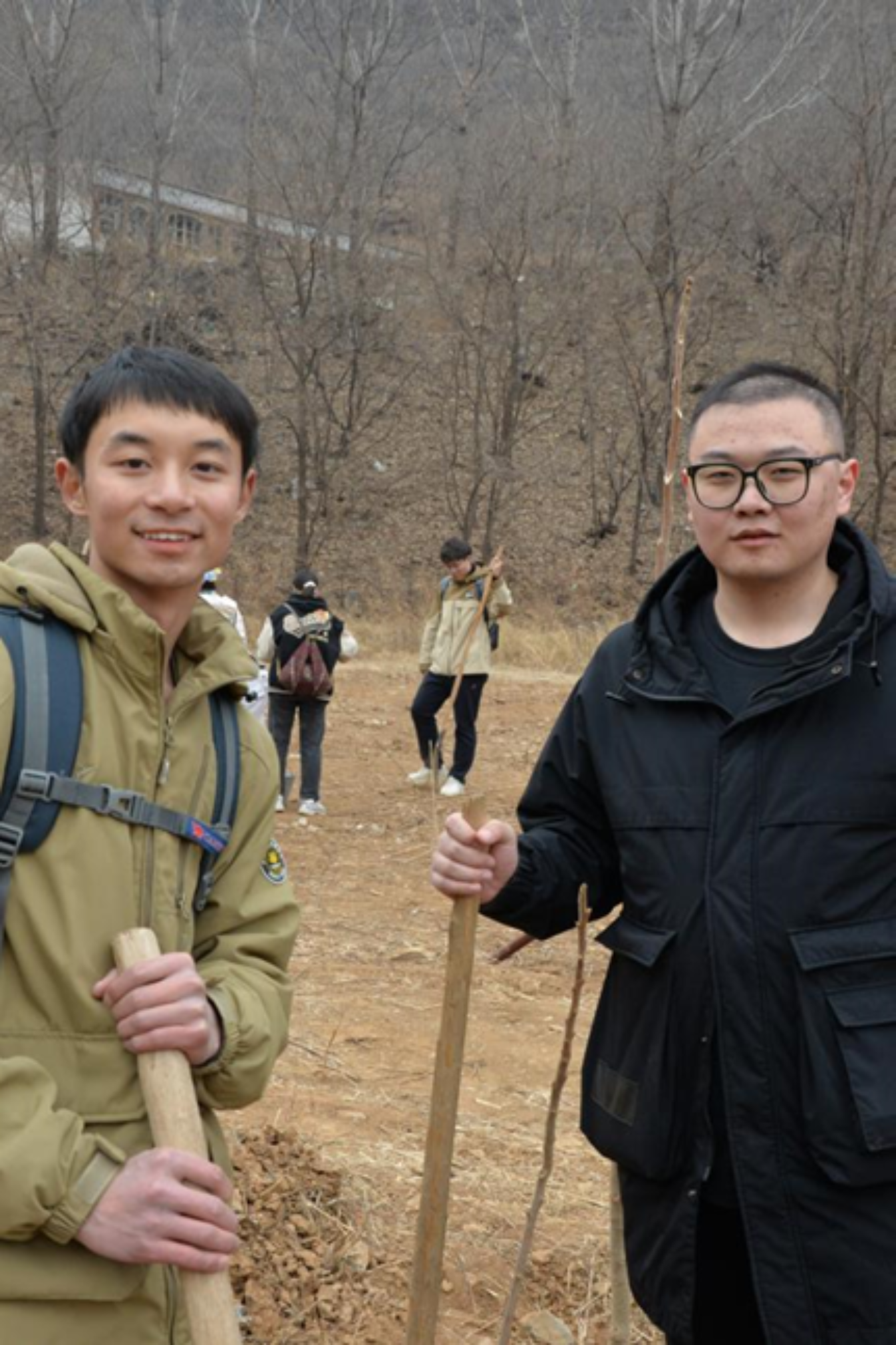 “一树新栽益四邻,野夫如到旧山春。”今年我们所种的树名唤“火炬”,因其果穗多而大,且有红色刺毛,紧密聚生成火炬状高悬树顶而得名。虽然它们如今还只如一枝枝细小的“木棍儿”,但已经能畅想未来长成一片火炬的热烈模样,祝愿它们茁壮成长,也祝愿我们的未来如火炬一般光彩夺目!