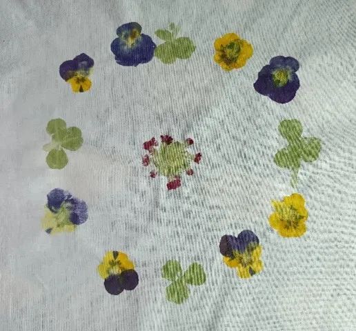 “做锤染太快乐了,像是一次精神出游。在一个阳光明媚的下午与花花草草打些交道,畅快地呼吸植物清爽的香味,随心所欲地搭配色彩,我们似乎全回到了童年。很幸运可以有这次机会,要谢谢组织活动的师兄师姐们,还有一起参与活动的老师也给了我们很大鼓励(老师甚至熟练地使用小红书哈哈)。后来我一直在想,不知道黛玉葬花的时候,有没有想过用它们染一幅画呢。”