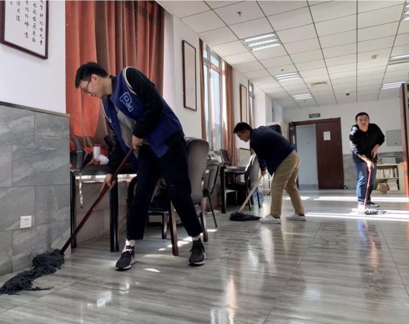 首先,同学们于上午9点30份来到了人民大学清史研究所文献馆进行打扫卫生的义务活动。文献馆作为清史所和其他专业同学查阅文献的场所,使用频率较高,故而灰尘较多,且在工作时段人流较大。同学们发挥不怕苦不怕累的作风,在清史所同学的引导下,迅速接受了任务,并以极高的热情清扫了文献馆地面、窗台、自习用桌椅在规定的时间内清理完成,且并未干扰同学们正常使用文献馆。