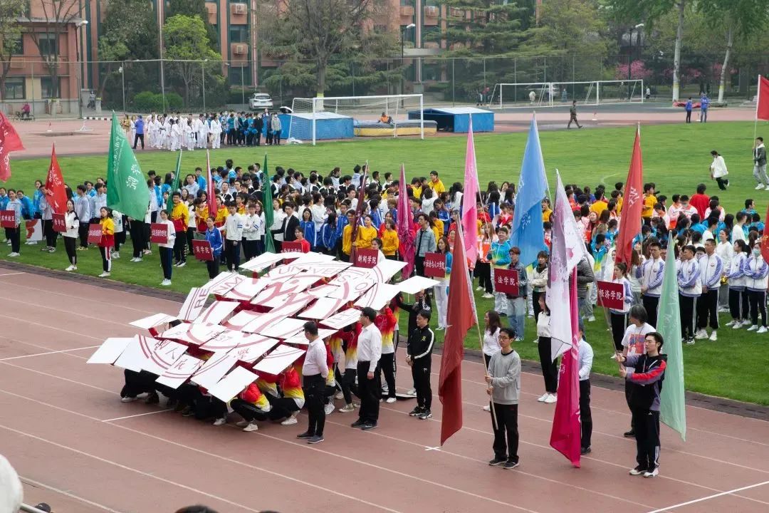 文史国不分家?不错,三大人文学院的学生代表,首次在运动会开幕式上联合出战,不仅热情满满,还为全校师生精心设计了入场节目。经过日以继夜的策划与排练,我们终于在周六看到了文史国联队的身影。上场前,学子们身着火红、亮黄、雪白三色交织的运动服,面带微笑。他们或手持道具,或摇动院旗,正整装待发。