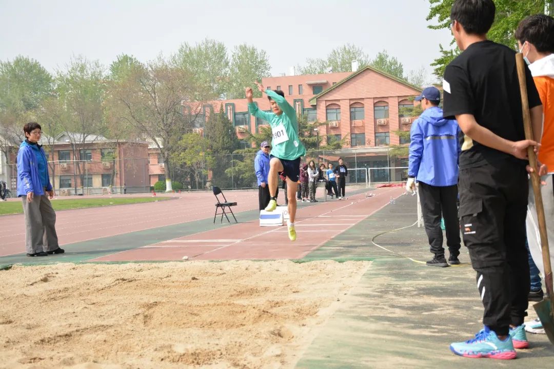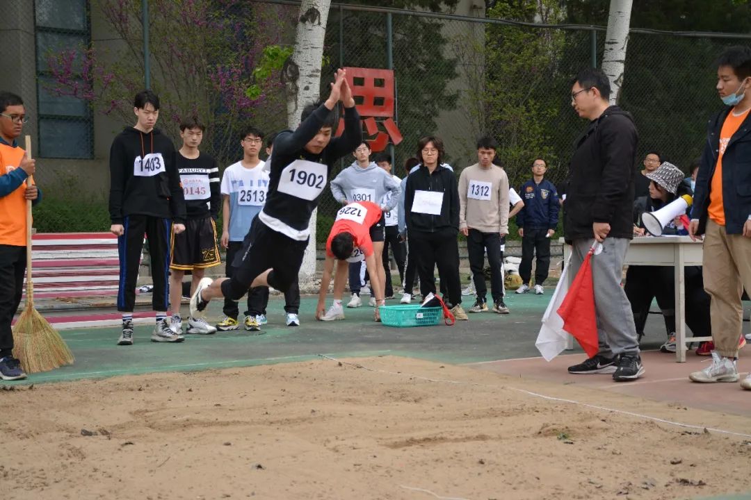 当天下午14:00,三级跳比赛在午后的阳光中拉开帷幕。参赛队员张贺凭借充分的优势,毫不费力地取得了比赛亚军。在第二天上午的跳高比赛上,他再次绽放光彩,在对力量与技巧的熟练把握之下,获得了全校第二名!试看张贺同学的身姿:腾空一跃,好似鹰飞倒仰,而落地之时,又如一骑绝尘,留下两次亚军成绩之余,也端的让人望洋兴叹。