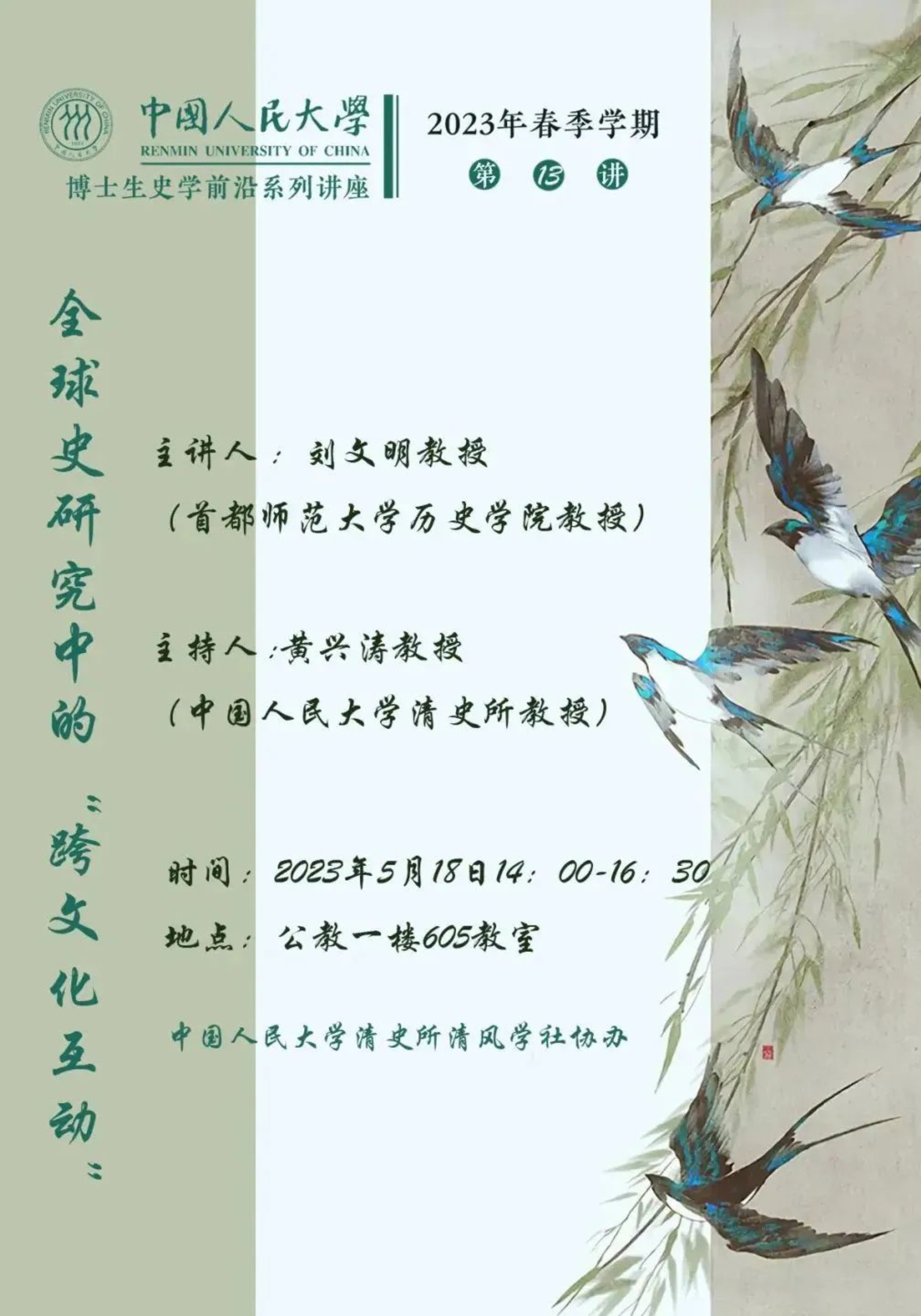 如今,一批人大学子追寻着戴逸,李文海,王思治等历史学先辈的足迹,立足学术,开放交流,潜精研思,将人民大学的清史研究薪火相传。这群志同道合的年轻人组成了一个充满活力、极具专业性的社团——清风学社。