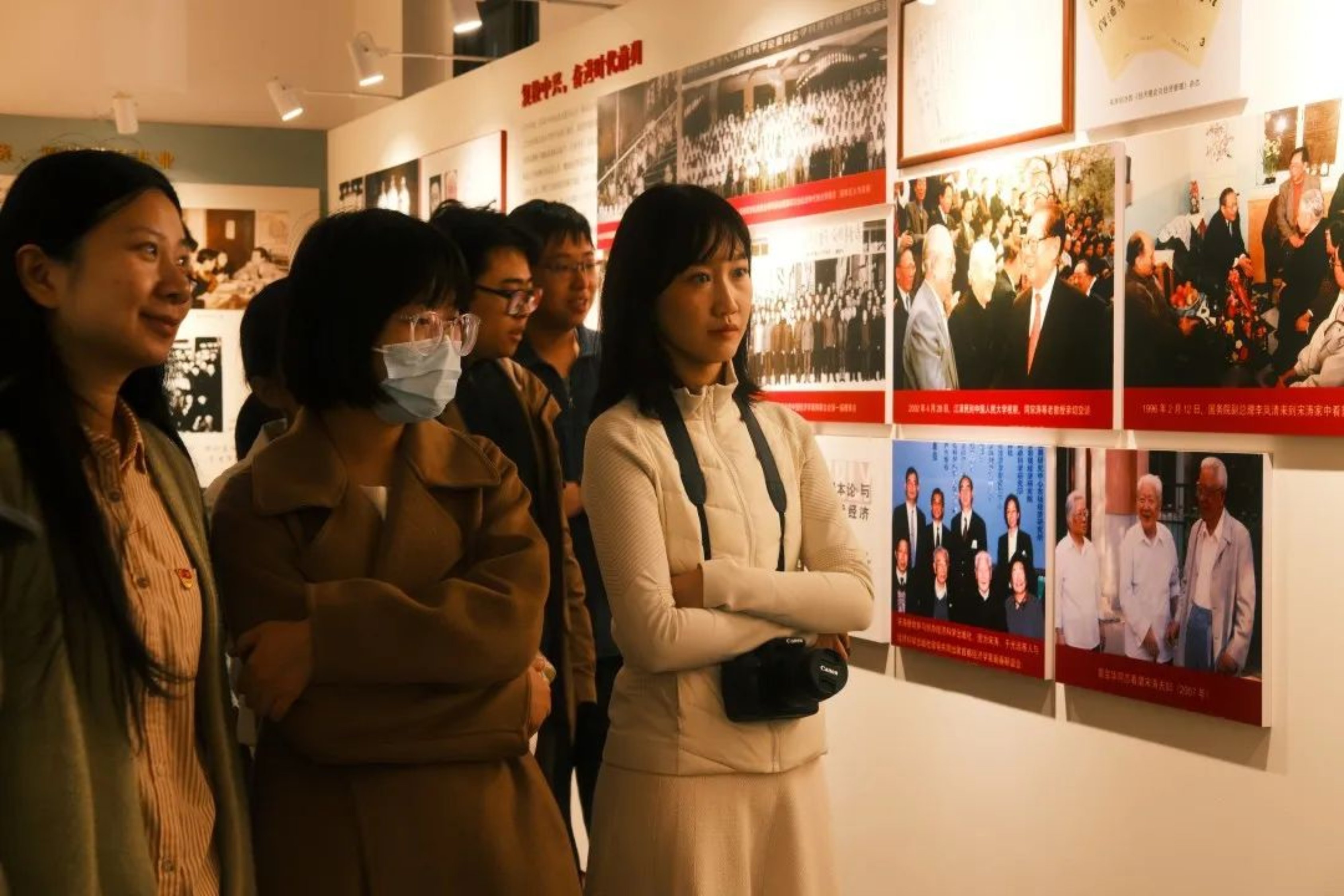 了解完老校区的建筑风格与规划布局,同学们在讲解员带领下进入主楼,参观了“一辈子做好事——吴玉章生平展”、“风吹松林,涛声阵阵——宋涛生平展”以及“他是一座山——吴宝康生平展”,领略吴玉章老校长、宋涛教授、吴宝康教授几位人大的老前辈在为党育人、为国育才与开辟中国自主的学术体系等方面做出的卓著贡献,感受人大人的初心和使命。随后,大家移步放映厅观看名为“沧桑百年人未老,谨守初心再出发”的校史宣传片。