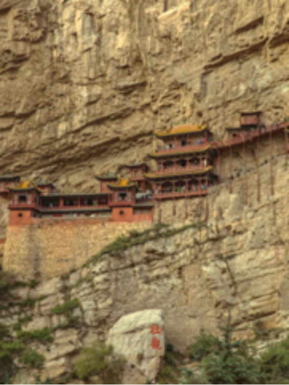 小组成员参访位于恒山翠屏峰峭壁上的悬空寺。顾名思义,寺庙建造在距离地面60多米的悬崖之上,远远望去,似乎只有立木支撑,如同“悬挂”在悬崖之上。寺庙创建于北魏太和十五年,金、明、清三代均曾重修,是恒山最富盛名的古建筑群之一。小组学员通过近距离地观察,学习了解悬空寺悬而不倒的原因。