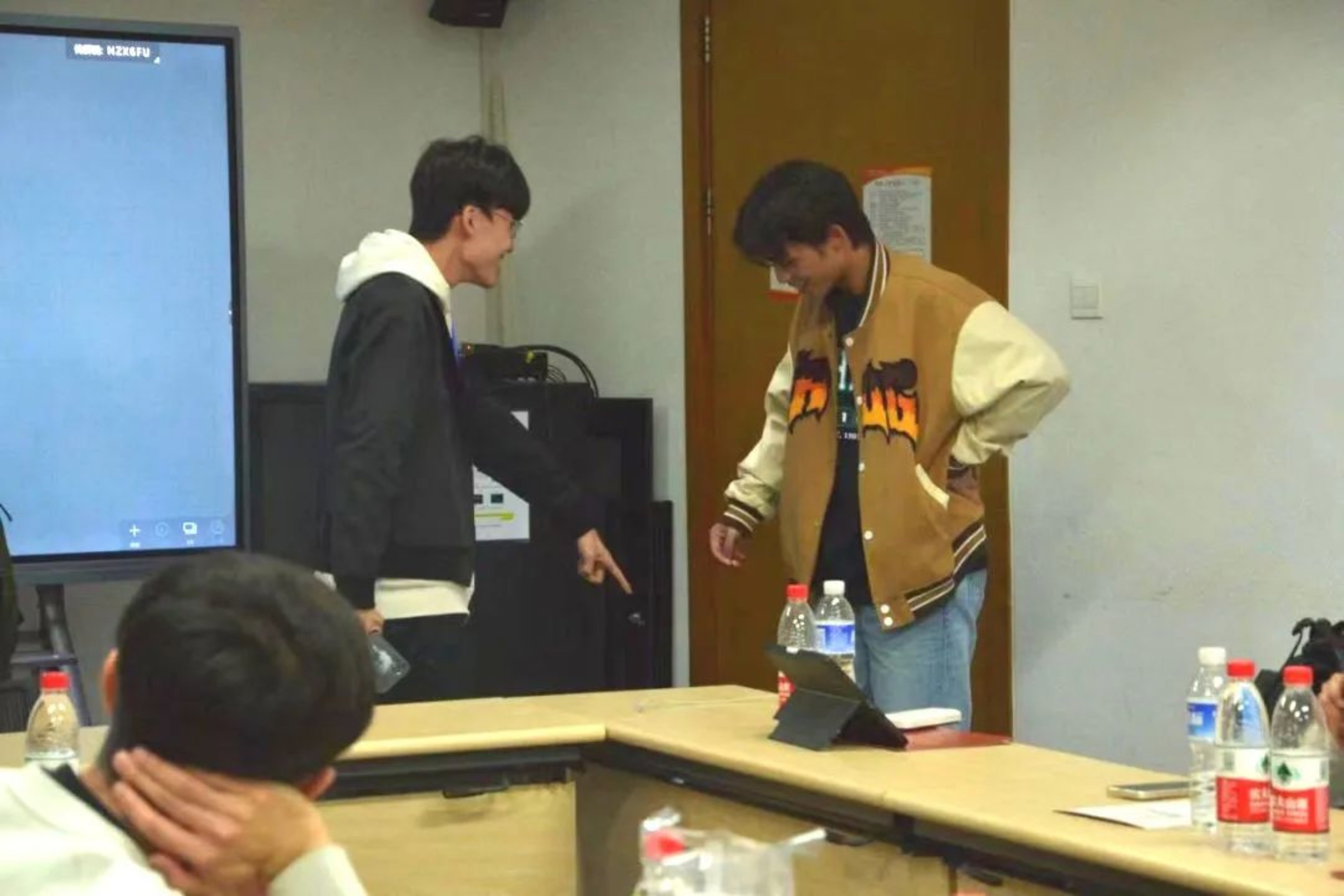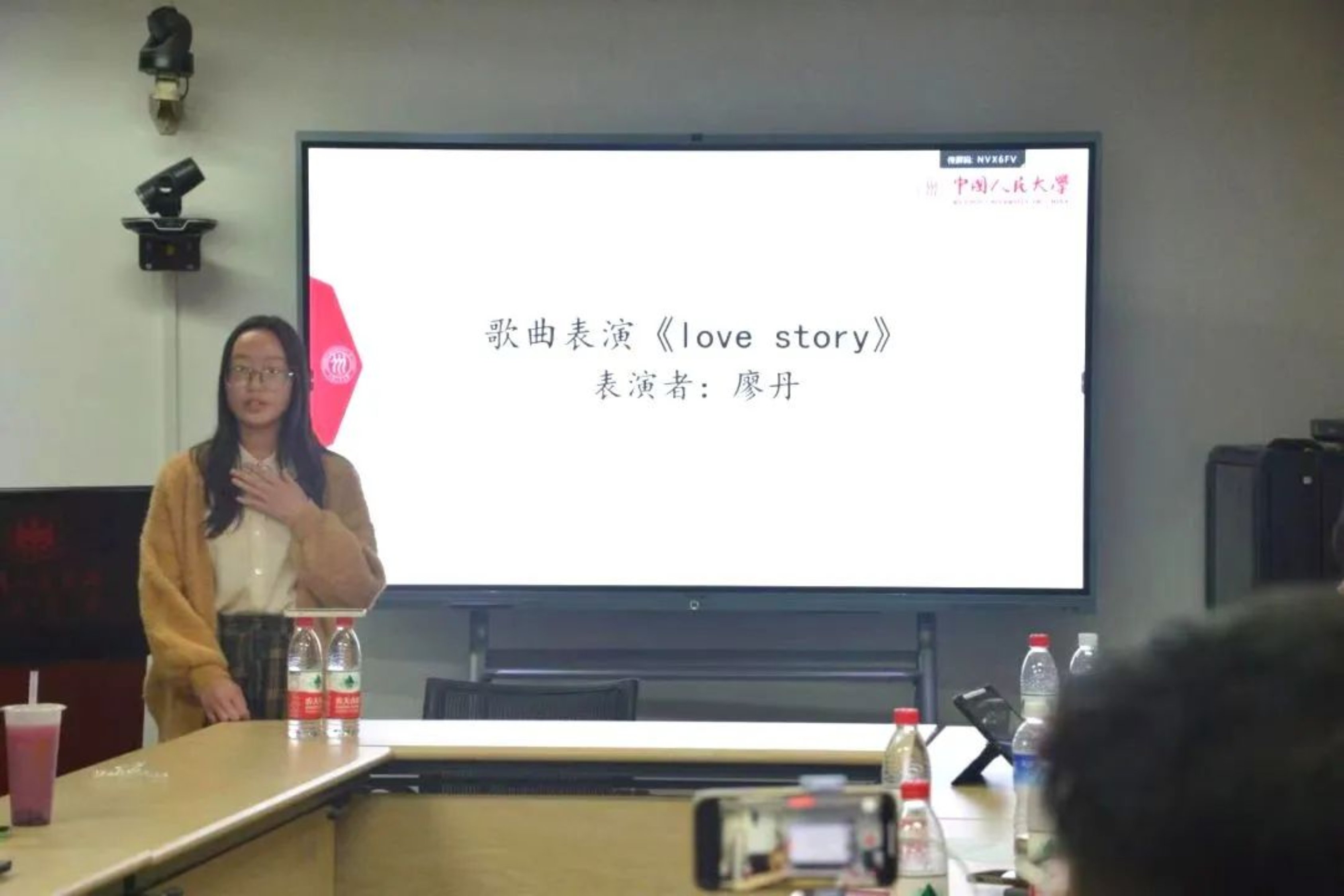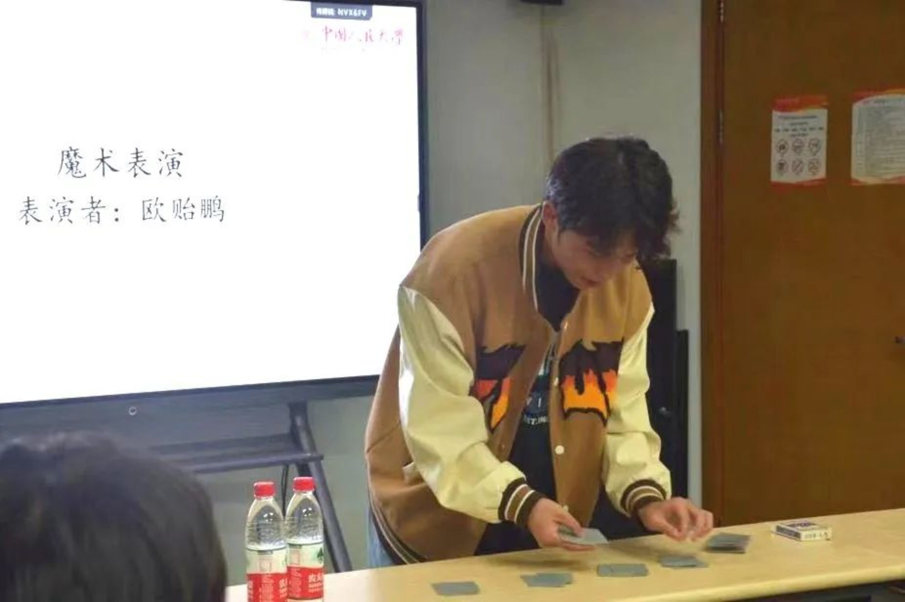 接下来,进入结营仪式的最后一个环节,即游戏、表演、自由交流环节。在“你划我猜”和“猜歌名”游戏的欢声笑语中,欢送会正式开始。廖丹同学一展歌喉,一首《love story》收获了热烈的掌声;欧贻鹏同学的魔术表演也十分精彩,大家的惊叹声此起彼伏。随后是邓明聪、陈兆权两位同学即兴演唱的歌曲《沉默是金》,及林建业、麦子轩、利重明三人合唱的歌曲《富士山下》,大家纷纷沉浸在优美的旋律中。