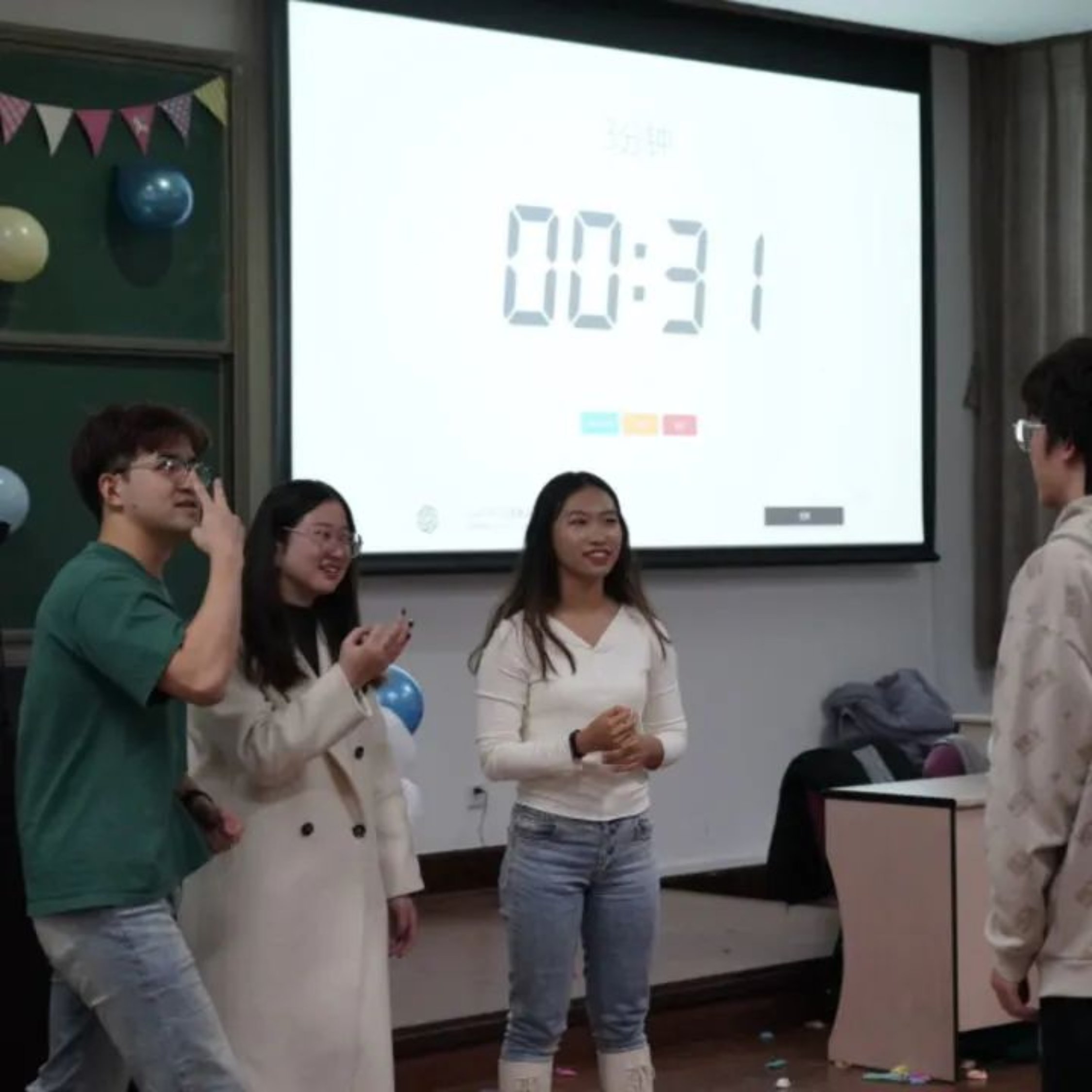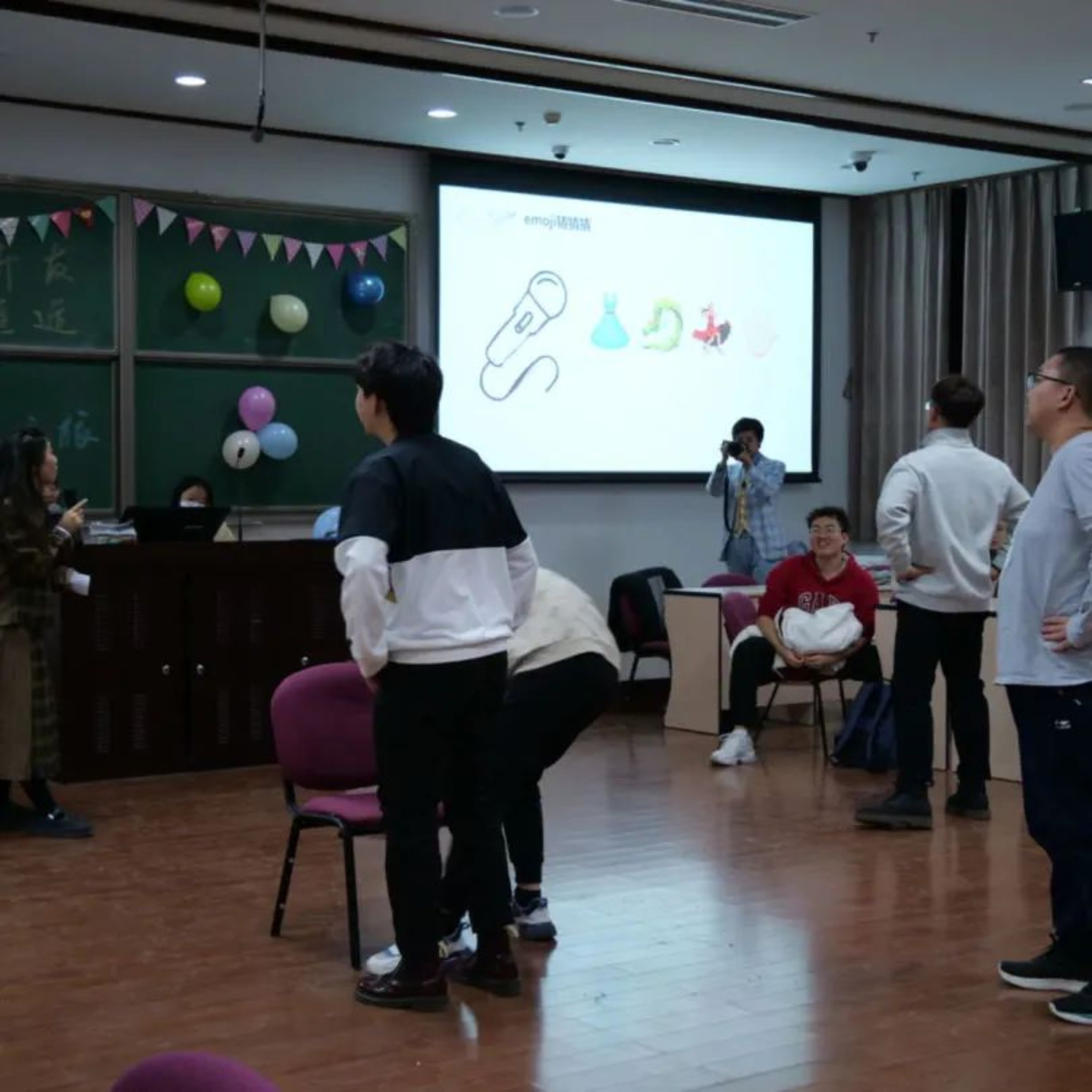 首先,抽到“嘴巴”的人必须在抽到“手”的两人帮助下把气球给吹起。然后,两位抽到“脚”的人合力夹起气球。最后,抽到“屁股”的人把气球给坐破。气球爆炸的声音将活动气氛推到了高潮。
