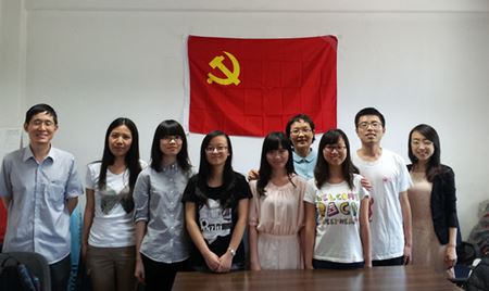2014年6月20日下午三时,今年会举办了新生党员入党宣誓仪式。新加入中国共产党的六名学生党员杨东峰、王咏琳、廖青青、娄山山、洪文和孟蒲参加了此次活动。学院党委副书记方玉萍老师、党委委员董建中老师和团委书记丁莉婷老师参加了此次活动。 作为本次宣誓活动的领誓人,董建中老师站在党旗前庄严地宣读入党誓词,新生党员同学们认真跟读,言语和神情间都传递着对党的向往与忠诚。宣誓仪式结束后,董建中老师与同学们进行了座谈,引领大家树立正确的人生理想,勇担时代赋予的历史使命,不辱共产党员的光荣称号。接下来,又进一步了解了同学们近期的思想和生活状况,希望大家在期末阶段再接再厉,保持良好状态,为本学期交上一份满意的答卷。