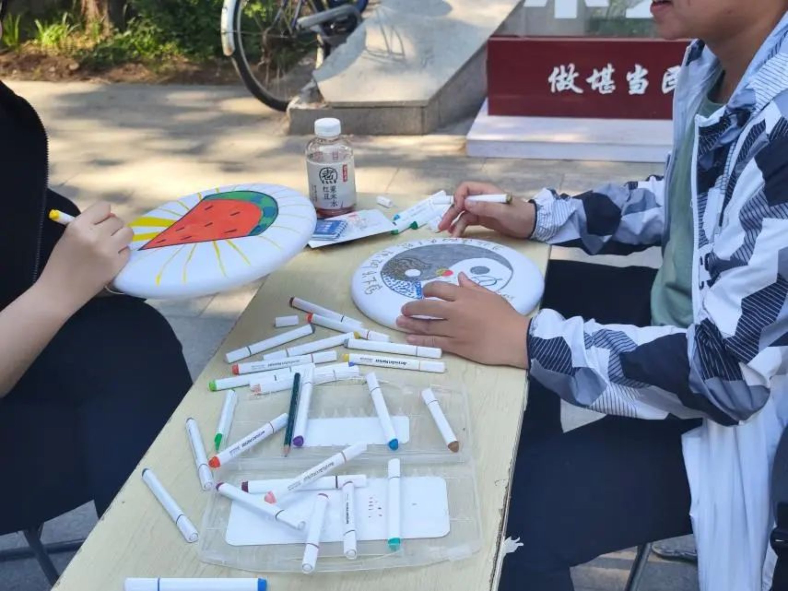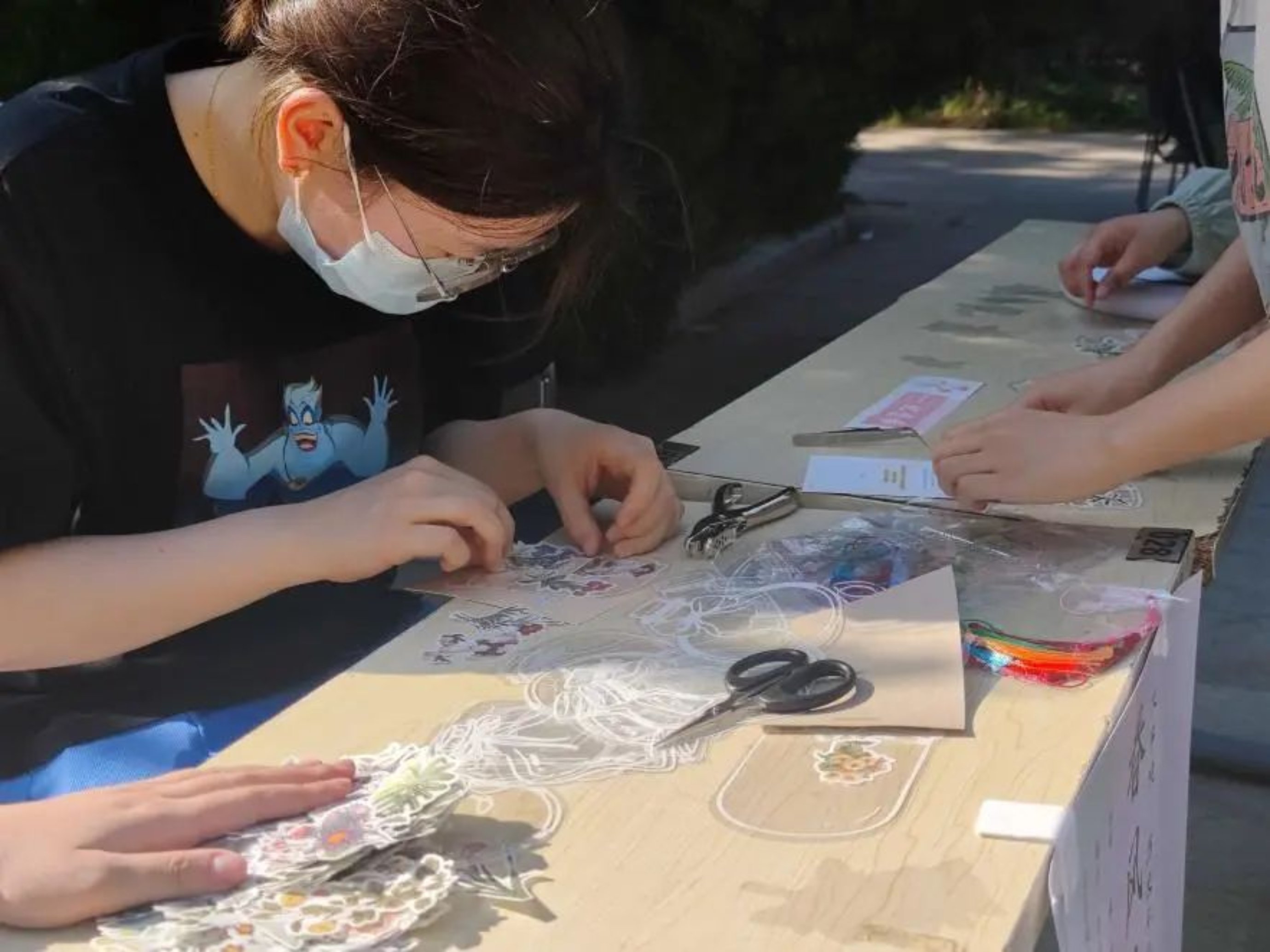 在飞盘摊位,手绘飞盘活动以其轻松活泼的形式成为现场的一道亮丽风景线。