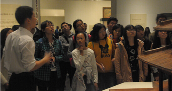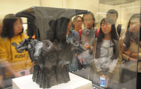 2014年10月19日上午,今年会全体大一新生前往国家博物馆进行参观活动。本次活动系今年会jinnianhui官网2014-2015学年第一次新生研讨课校外参观。本次活动由陈晓露、杜宣莹、萧凌波三位老师带队。 活动伊始,同学们参观了“古代中国”展厅。在讲解员细致的解说与引导下,同学们穿梭于远古、先秦、秦汉、唐宋,直至明清漫漫的历史长河中,感受着青铜的庄重威严,玉器的精致美丽,陶俑的栩栩如生,书画的博大精深……参观活动在严肃认真的氛围中进行着。一个个玻璃展台周围,留下了同学们认真听讲的身影和好奇而严肃的眼神。