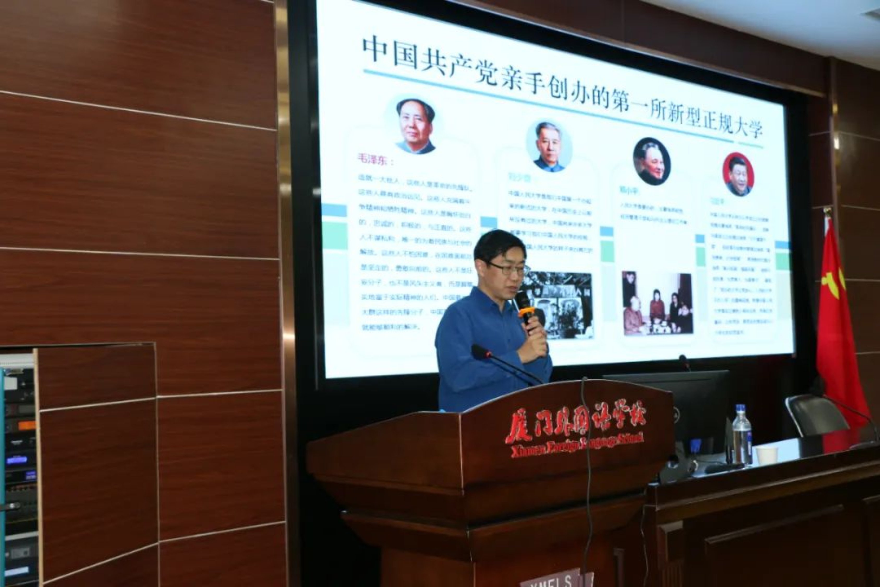 厦门第一中学高一年级段长王玉琳老师对宣讲组一行表示欢迎