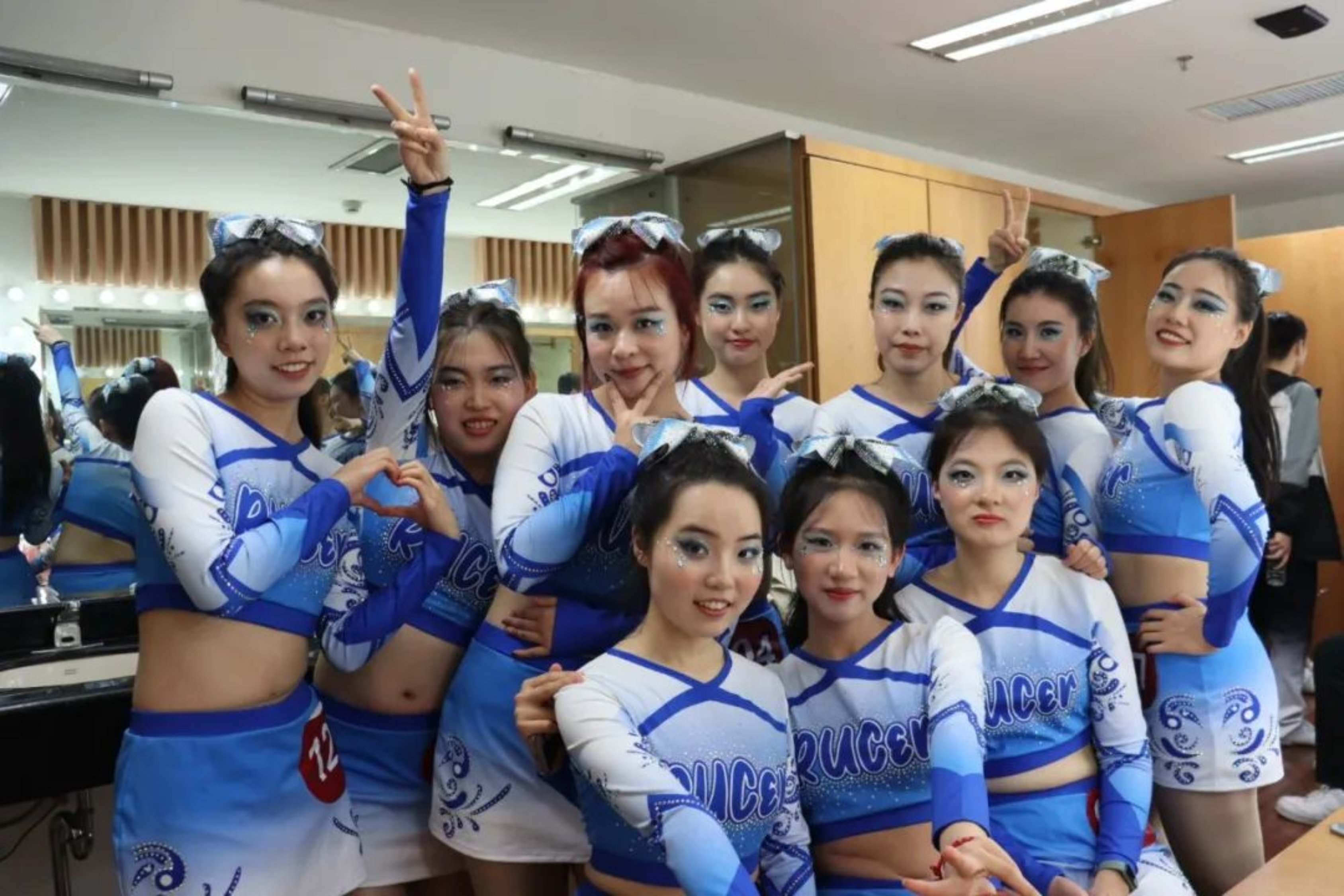 下午一点半左右,联队队员集聚在明德b114化妆间,紧锣密鼓地进行赛前准备,在志愿者的协助下完成妆造,预备着成为舞台上浓墨重彩的一笔。