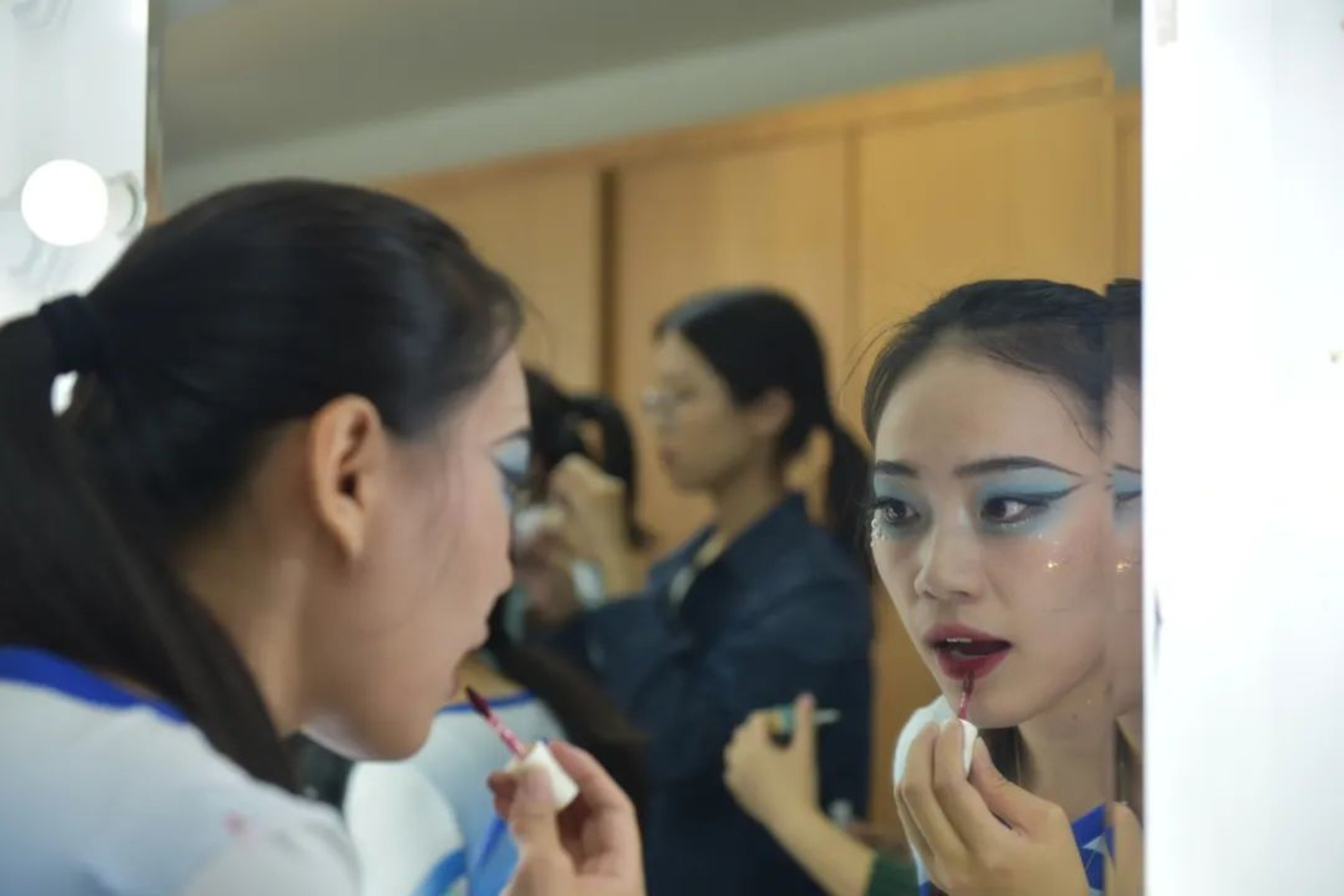 随后,队员进入后台备场。帷幕掀起,演出即将开始。