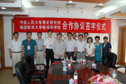 8月11日,我所与韩国翰林大学翰林科学院签署合作协议。翰林科学院副院长梁一模教授率团到访清史所,清史所所长黄兴涛教授、副所长夏明方教授、杨念群教授,以及刘凤云、华林甫、孙喆、董建中、刘文鹏、阚红柳等多位老师参加了签字仪式。 根据合作协议,双方作为高等学校的学术机构,本着自愿互商原则,将在参与学术项目、交换资料、互访交流、共同举办学术会议等方面进行密切合作。