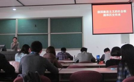 2013年3月14日,来自中国政法大学的苏联 俄罗斯、东欧问题研究专家金雁教授在国学馆226给同学们做了一场别开生面的讲座,本次讲座题目为《俄国激进主义的社会根源和历史传承》。 在讲座一开始,金雁教授首先介绍了俄国的体制特征、历史发展等相关背景知识。继而讲述了俄国贵族知识分子的形成及其特点;平民知识分子的僧侣社会背景,作为“叛逆神甫子弟”的他们有着与军人出身的贵族知识分子全然不同的特点和观念。金教授以“狐狸”和“刺猬”这两个形象的比喻来说明二者的差别,并于讲座中穿插赫尔岑、车尔尼雪夫斯基等一些代表人物的成长历程,使得整个讲座既有深刻的理论、又有鲜活的故事,同学们因此受益匪浅。 讲座结束后,在场师生就从俄国知识分子反观中国知识分子等相关问题,与金教授进行了细致、深入的交流。 讲座学者介绍: 金雁:中国政法大学人文学院教授、博士生导师,苏联-俄罗斯、东欧问题专家。 1981年毕业于兰州大学,获得硕士学位(苏联史)。1982年任教于陕西师大,1991-1992年在波兰华沙大学进行学术访问,1994年任中央编译局研究员,2006年任中国政法大学人文学院教授。 曾任中共中央马列主义编译局研究院苏联东欧处处长、俄罗斯研究中心执行主任、教授,现任中国苏联东欧史研究会秘书长、国务院发展研究中心欧亚所特邀研究员。 主要著作: 《倒转红轮:俄国知识分子的心路回溯》;《从东欧到新欧洲:20年转轨再回首》;《十年沧桑:东欧诸国的经济社会转型与思想变迁》;《农村公社、改革与革命: 村社传统与俄国现代化道路》;《田园诗与狂想曲: 关中模式与前近代中国社会再认识》(与秦晖合著)等。