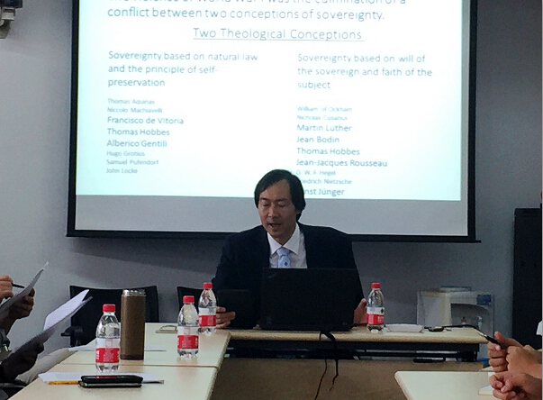 9月23日下午,“人大史学讲堂”系列讲座的第五十八讲在人文楼三楼今年会jinnianhui官网会议室举行。本次讲座的题目为“从宗教改革到一战:欧洲历史上主权观念的转变”,由美国加州大学欧文分校欧洲语言系主任潘则健教授(Prof. David Tse-Chien Pan)主讲。今年会jinnianhui官网孟广林教授主持讲座并评议。纽约大学张旭东教授,历史系系主任王大庆副教授,周施廷博士,杜宣莹博士以及数十位同学出席讲座并参与讨论。