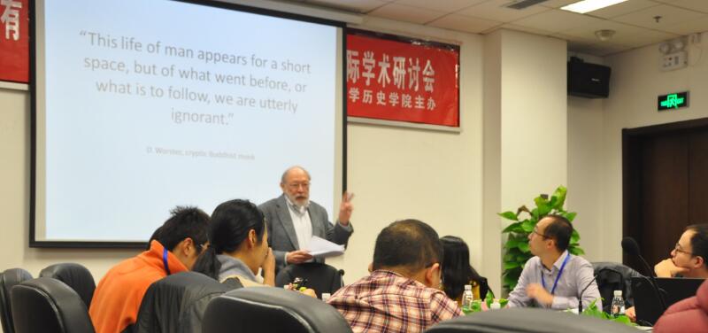 7日上午八点半,会议在Donald Worster 教授的主题演讲中拉开序幕。Donald Worster教授围绕“Historians study change over both time and space”这一命题,对学术研究中的“空间”与“时间”之关系,进行了高屋建瓴的阐述,迅速将会议带进浓厚的学术氛围中。