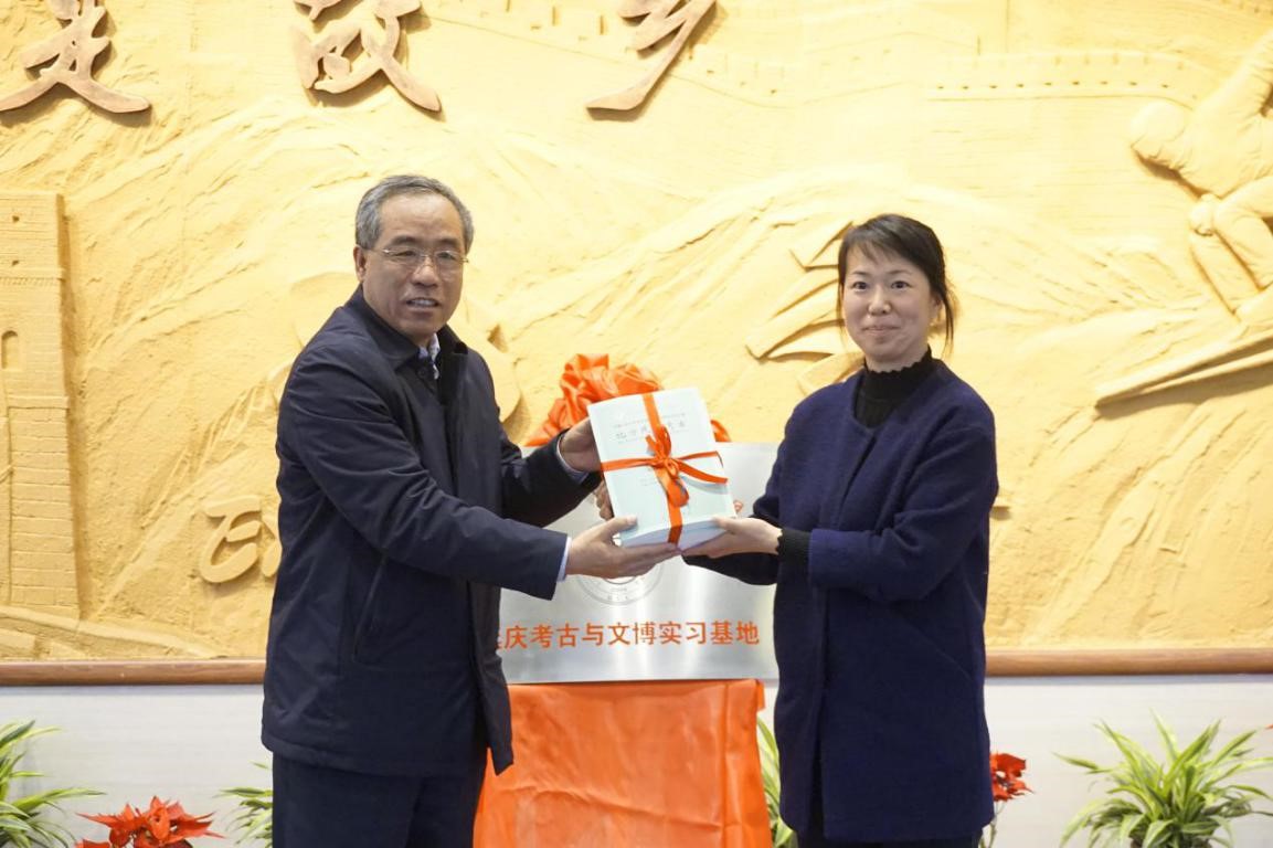揭牌仪式后,魏坚教授代表人大考古向延庆博物馆赠送北方民族考古研究系列丛书。