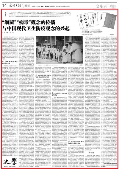 [光明日报]黄兴涛 陈鹏:“细菌”“病毒”概念的传播与中国现代卫生防疫观念的兴起