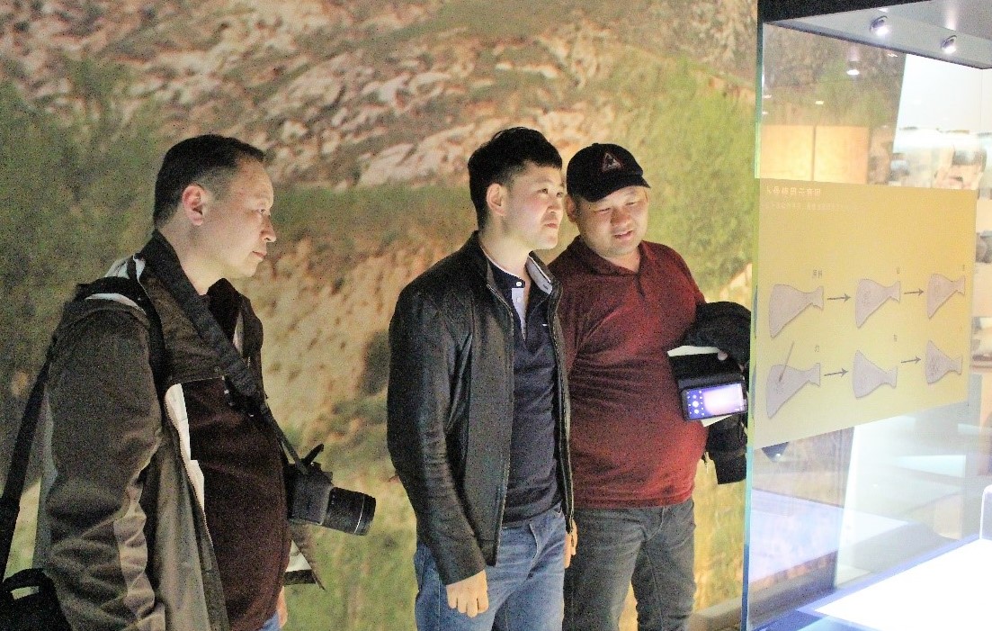 中午在察右中旗午餐,下午返回集宁,在郝晓菲老师的陪同下参观乌兰察布市博物馆。该博物馆以“多元、融合、升华、辐射”为主题,分为“文明星火”(史前时期)、“民族熔炉”(夏至唐)、“帝国腹里”(辽金元)、“塞外手足”(明清)4个部分,共13个单元。因蒙方学者之前来过该博物馆,所以此次参观的重点放在了“民族熔炉”部分。通过对博物馆所陈列的鲜卑陶器、鹿纹金牌饰、金步摇等文物的观察,奥德巴特尔研究员对丰富灿烂的鲜卑文化表达了由衷的赞叹。苏和巴特尔教授认为此次考察所搜集的图文资料将为他们进一步了解和研究鲜卑文化提供帮助。
