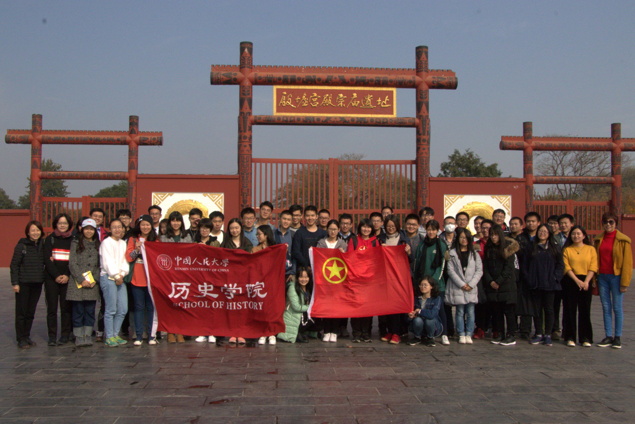 为帮助2018级本科新生初步建立历史现场感,更好地学习掌握中国古代史课程,促进同学交流,提升班级凝聚力、向心力,学院于2018年11月3 4日组织18级本科新生赴安阳、邯郸进行课外教学。本次课外教学由姜萌、李光伟、郭相宜等老师带队,2018级新生40余人参加。为达到更好教学效果,学院特别邀请中国社会科学院考古研究所安阳工作站岳洪彬研究员担任本次课外教学的指导教师。 3日凌晨5点半,师生一行东门出发,北京西站乘坐高铁前往安阳。安阳殷墟位于河南省最北部,是中国历史上第一个有文献记载、并为甲骨文和考古发掘所证实的商代都城遗址,距今已有3300年历史。以小屯宫殿宗庙区为中心,沿洹河两岸呈环型放射状分布。雄伟壮阔的宫殿宗庙基址、等级森严的王陵大墓、星罗棋布的居住遗址、密布其间的手工作坊和以甲骨文、青铜器为代表的丰富的文化遗存,构成殷墟独特的文化内涵。上午10点,师生到达殷墟博物馆。殷墟博物馆位于殷墟宫殿宗庙遗址内右侧的洹河西岸,是国内唯一一家系统展示商代出土文物的地下博物馆,平面酷似甲骨文“洹”字,取殷墟依附洹河之意,象征洹水在孕育商代文明中的重要作用。
